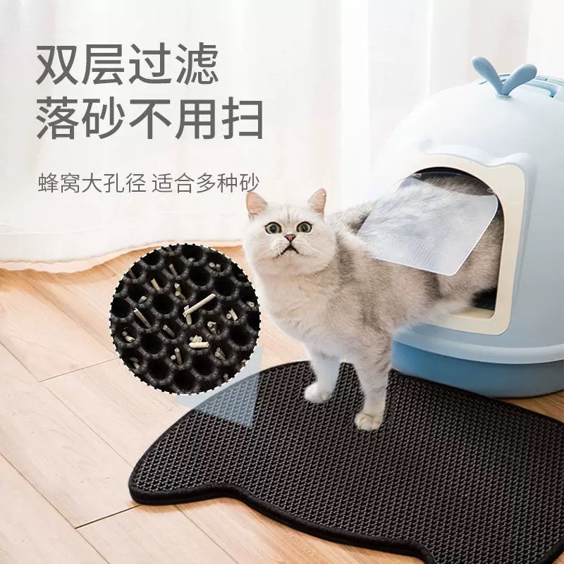 猫头双层猫砂垫防溅垫双层过滤防带出脚垫防水加厚可洗猫砂宠物垫