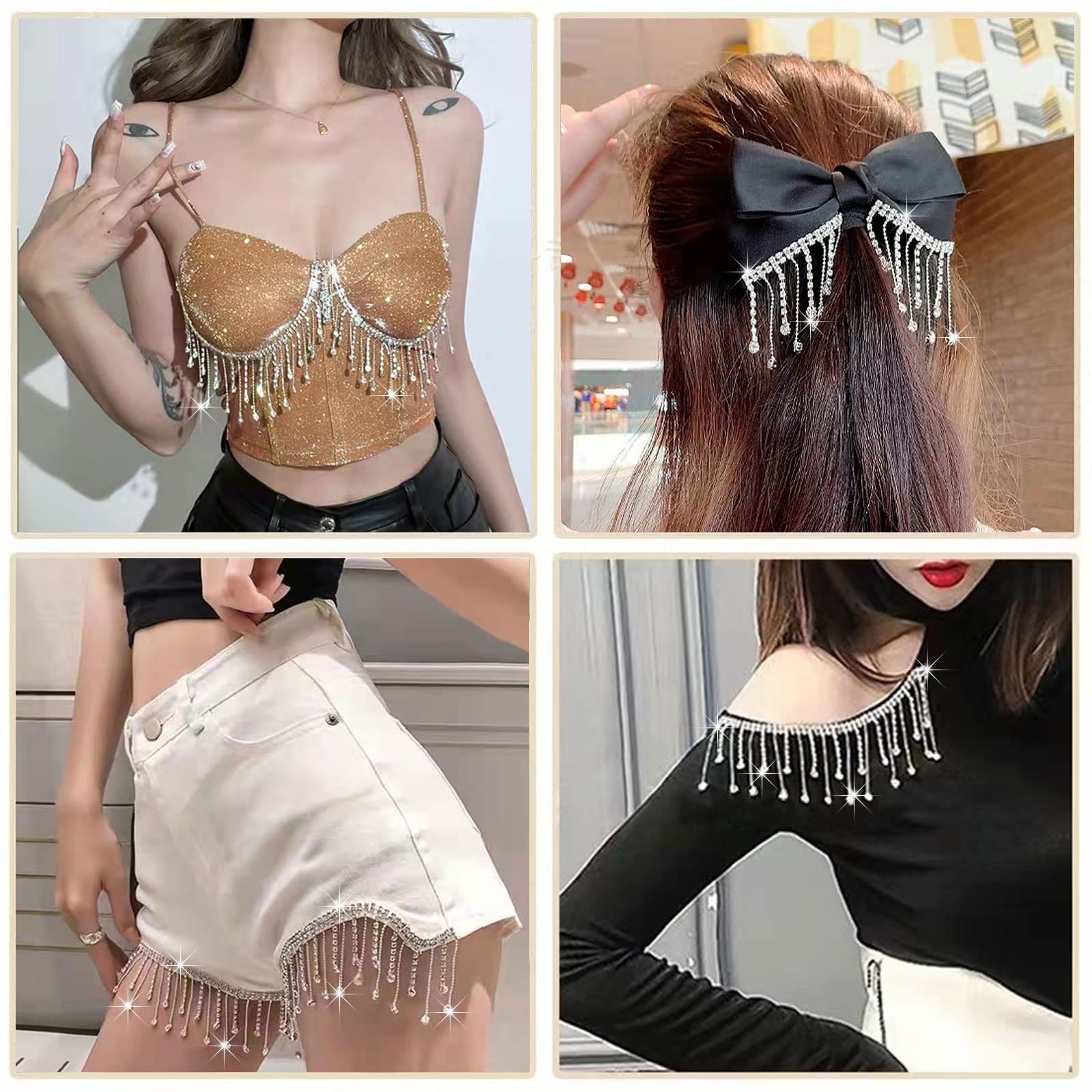 流苏链条diy配件钻链花式爪链服装辅料流苏链珠链装饰烧焊水钻链