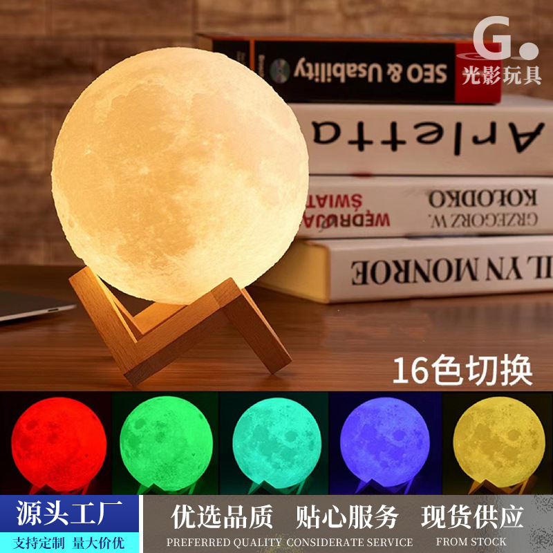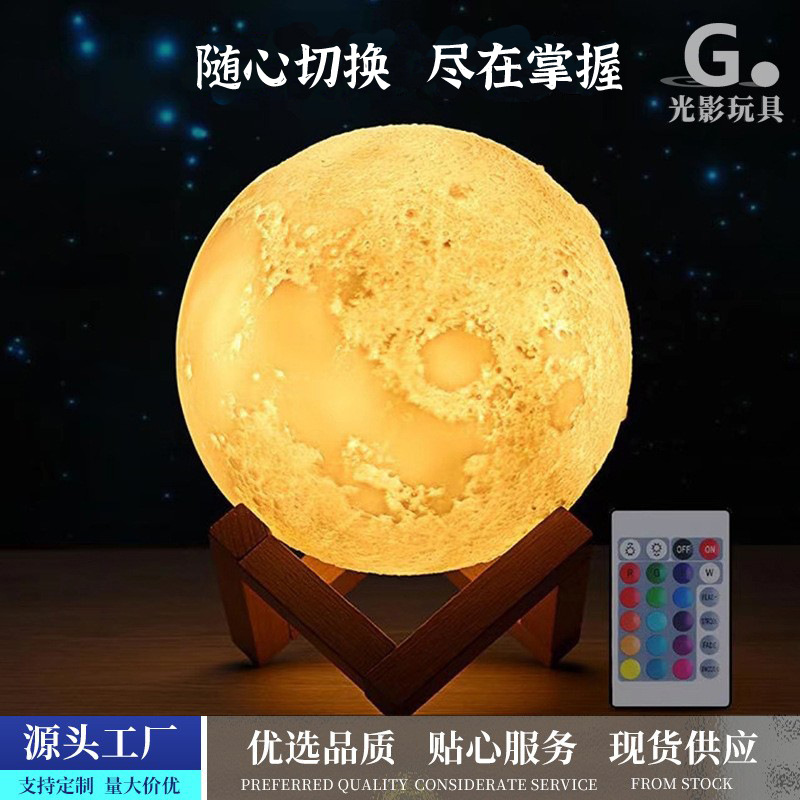 充电遥控3d月球灯卧室床头灯led小夜灯彩色月亮台灯创意装饰摆件