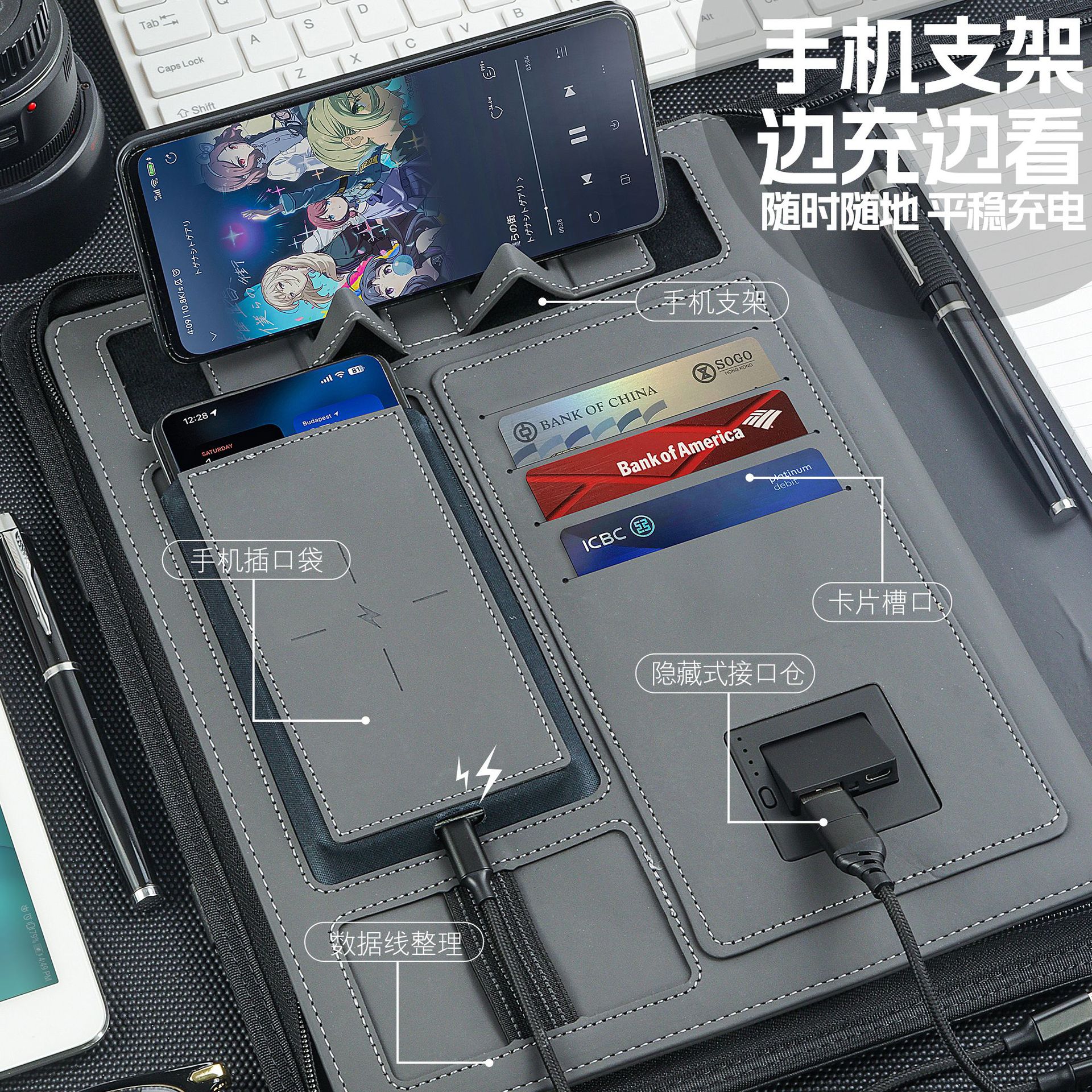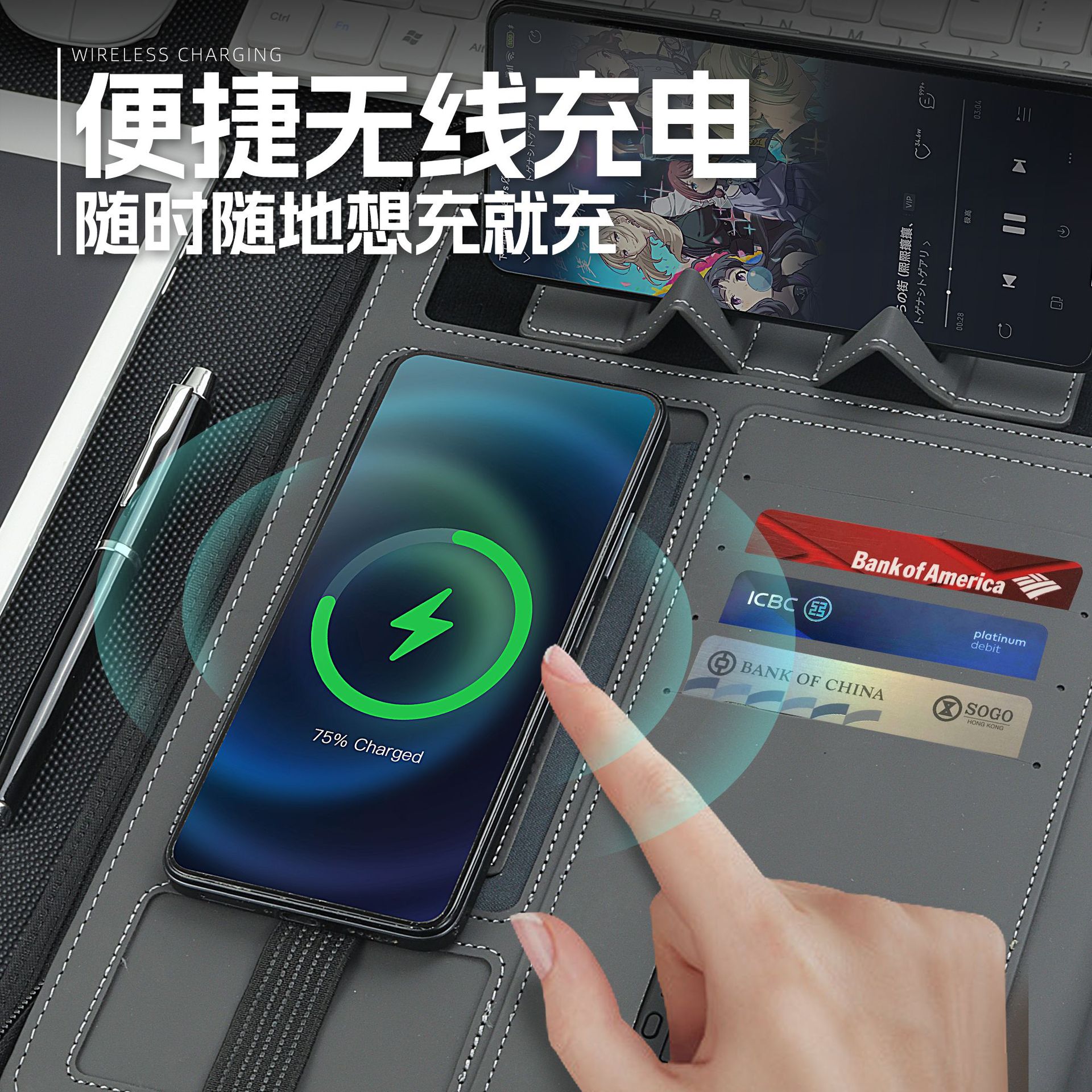 8000毫安+无线充+LED发光标+手机支架+收纳袋