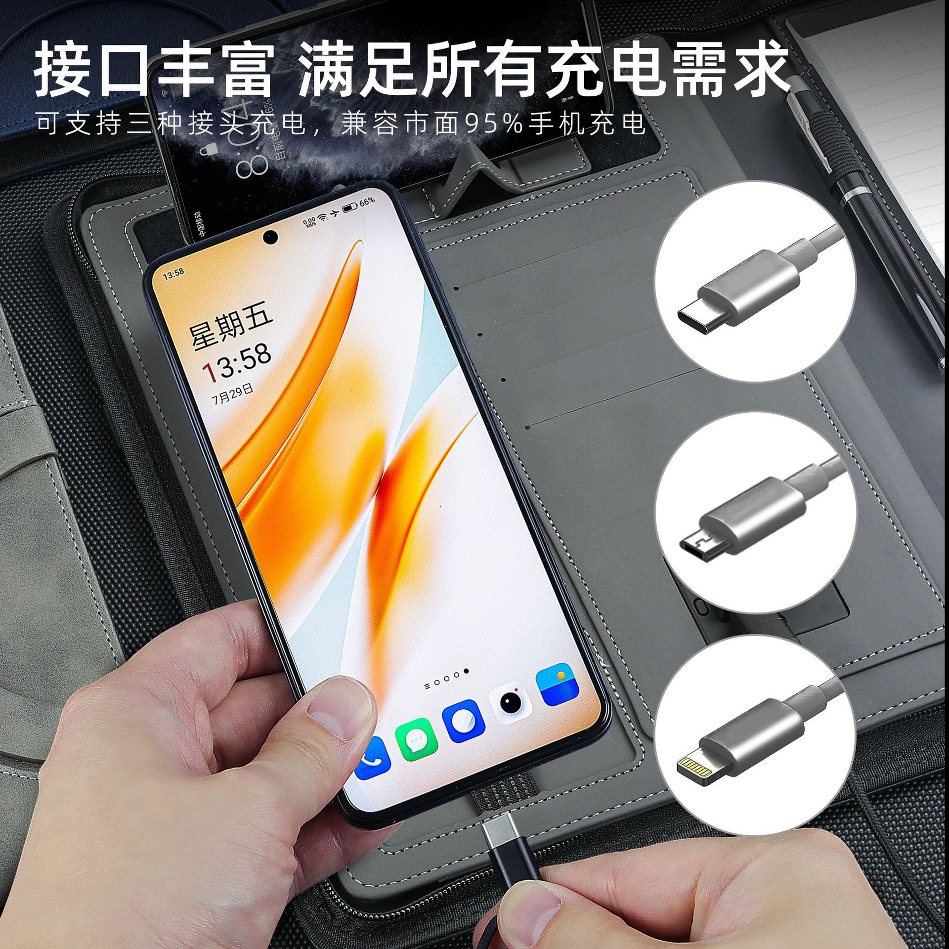 A4手提文件包充电笔记本 收纳卡包电脑包拉链包 商务经理夹公文包