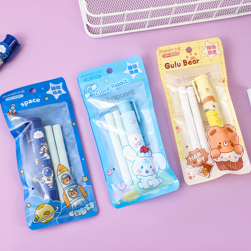 袋装创意卡通按动橡皮擦小学生幼儿园儿童专用品可爱橡皮环保