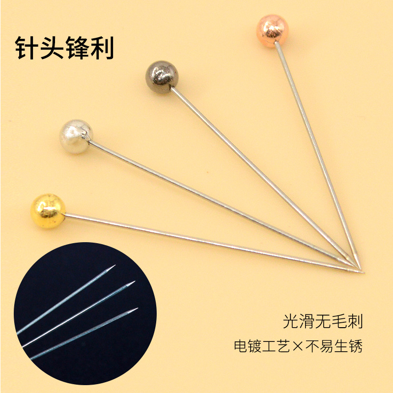 彩色珠针珠光针定位针手工用固定针彩色大头针金针银针圆盘金属针