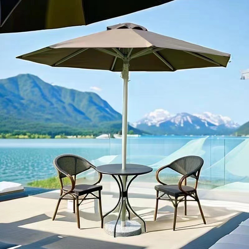 遮阳伞大号户外伞防晒不锈钢遮阳伞仿木纹铝合金中柱伞庭院露台伞