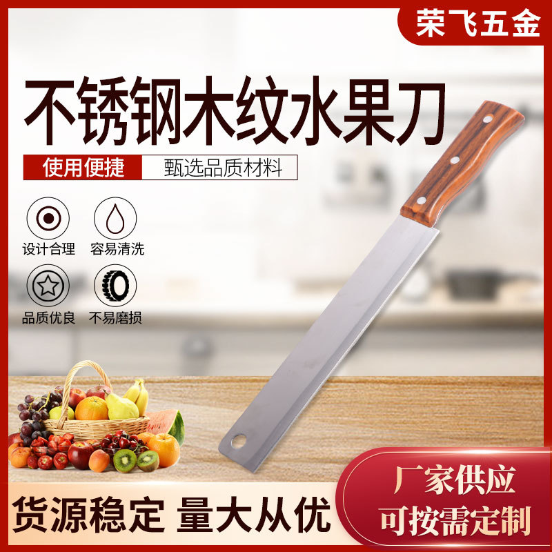 厂家批发不锈钢木纹水果刀锋利耐用切西瓜神器多功能削皮刀面包刀