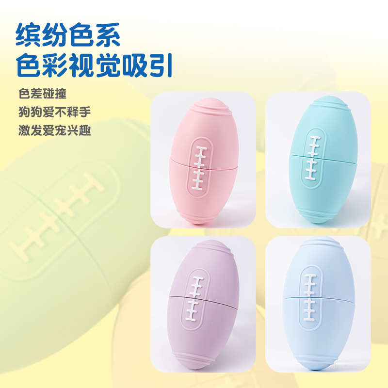 亚马逊新款硅胶宠物漏食器橄榄球狗狗啃咬解闷玩具防噎慢食玩具