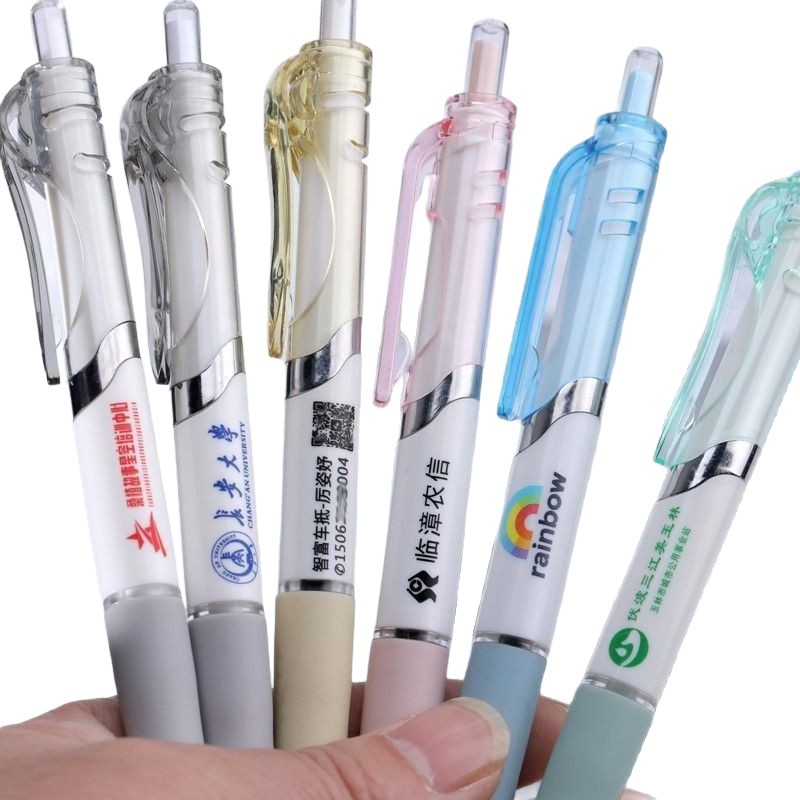 按动K35中性笔签字彩杆黑圆珠水笔印logo刻字企业公司广告笔定制