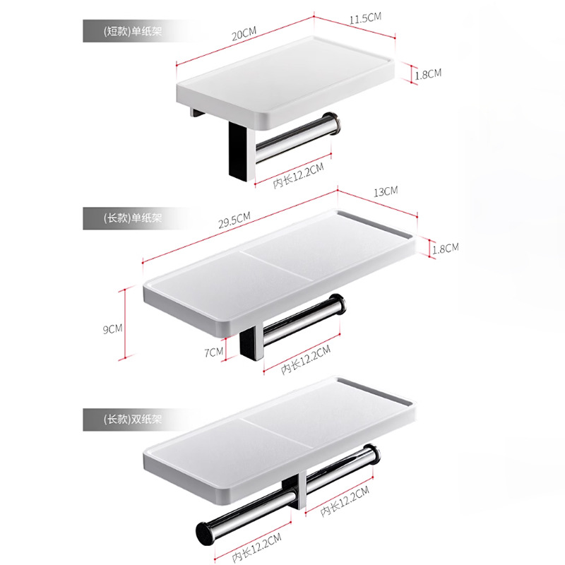 | 尺寸 | 亮白-长款单纸巾架 | 尺寸 | 亮白-长款双纸巾架 |