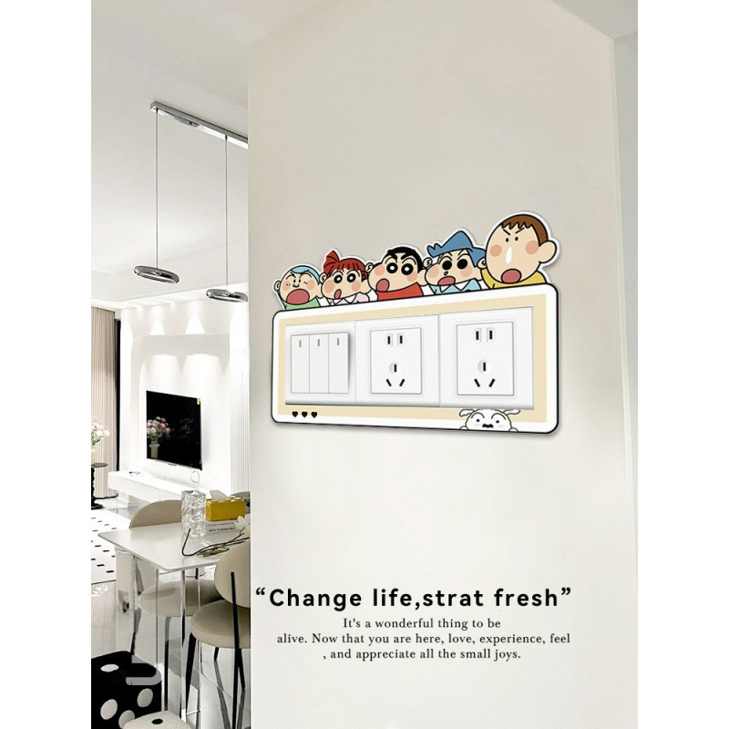蜡笔小新开关边框套贴可爱插座遮挡装饰贴保护套卡通创意美化墙贴