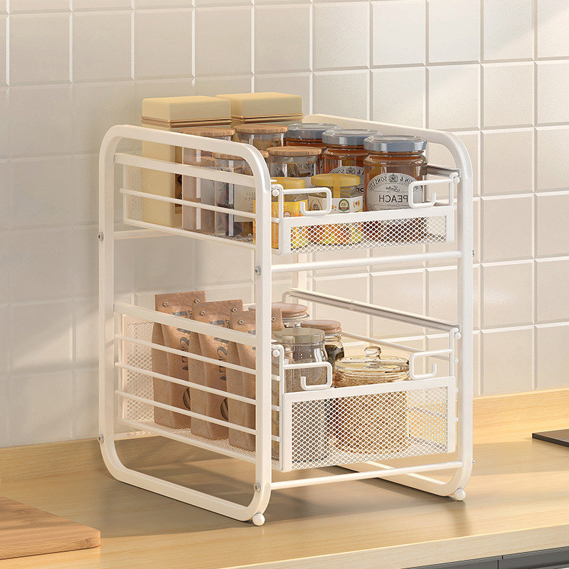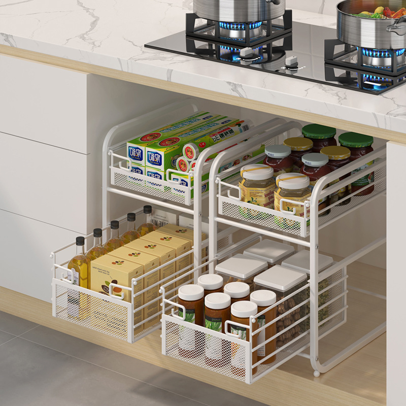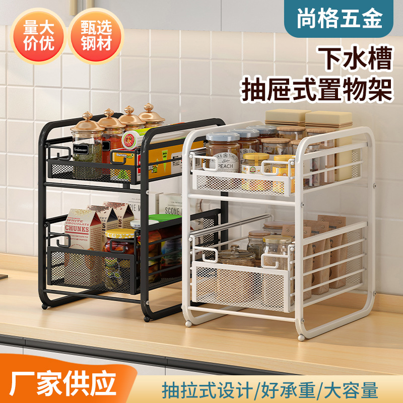 厨房下水槽置物架家用分层台面调料收纳架伸缩推拉抽屉蔬菜收纳架