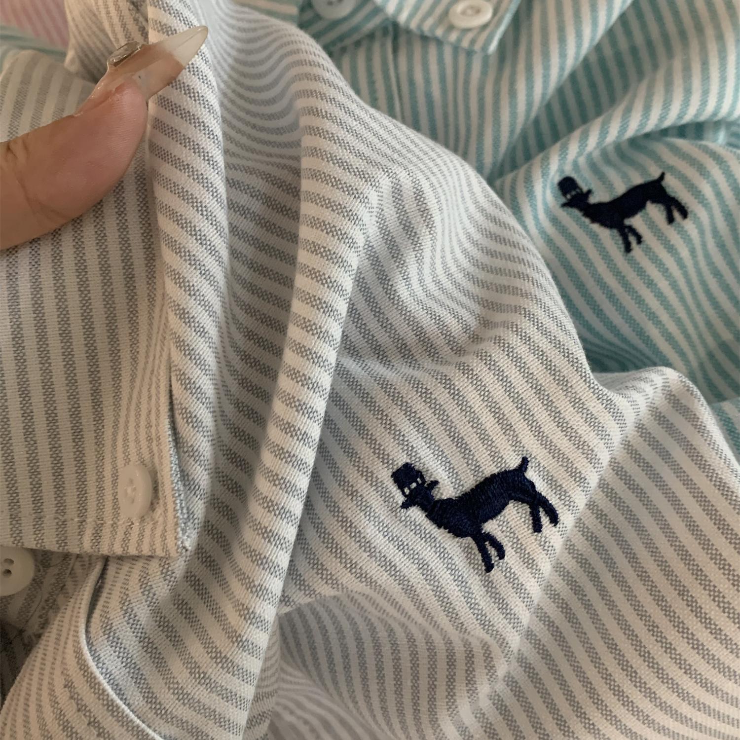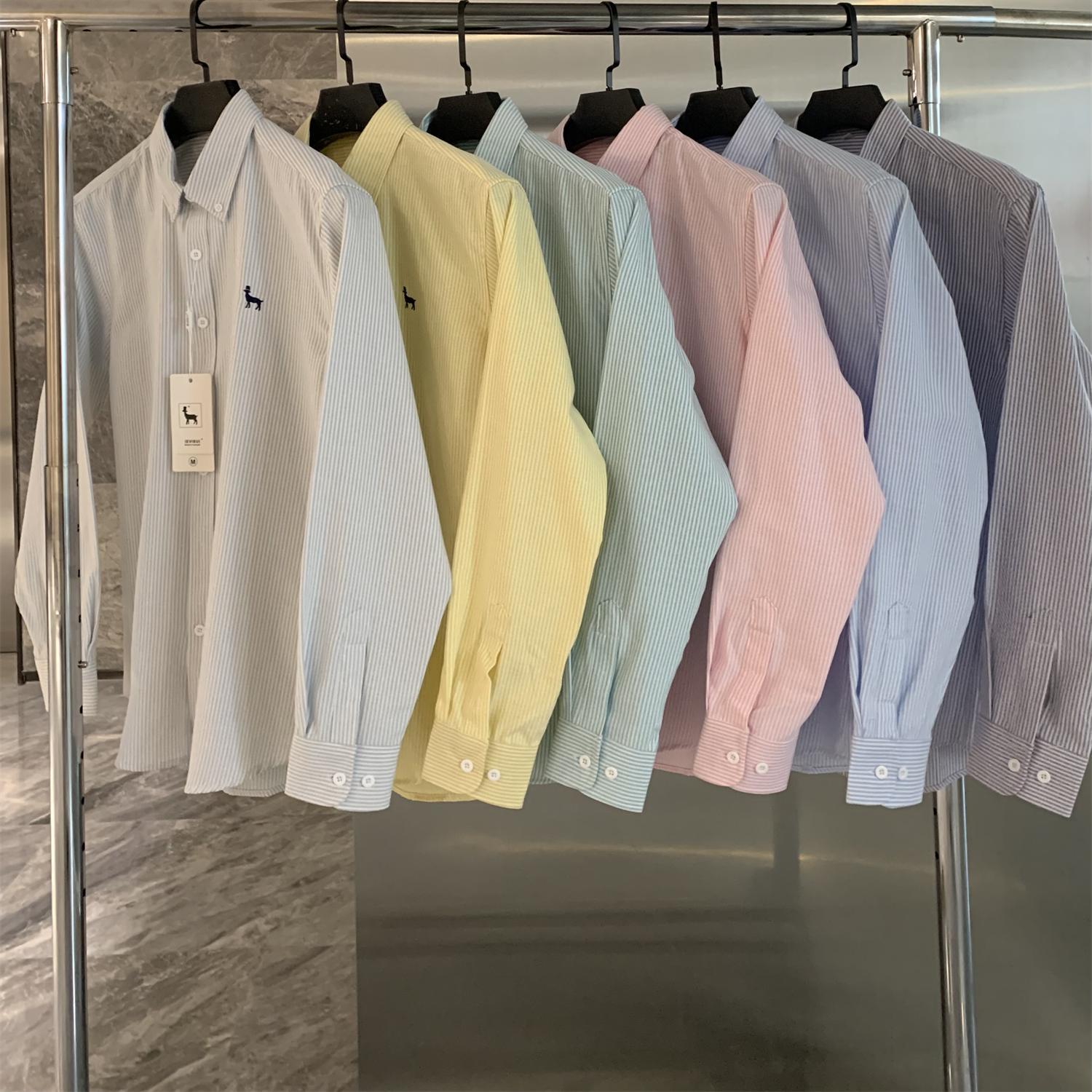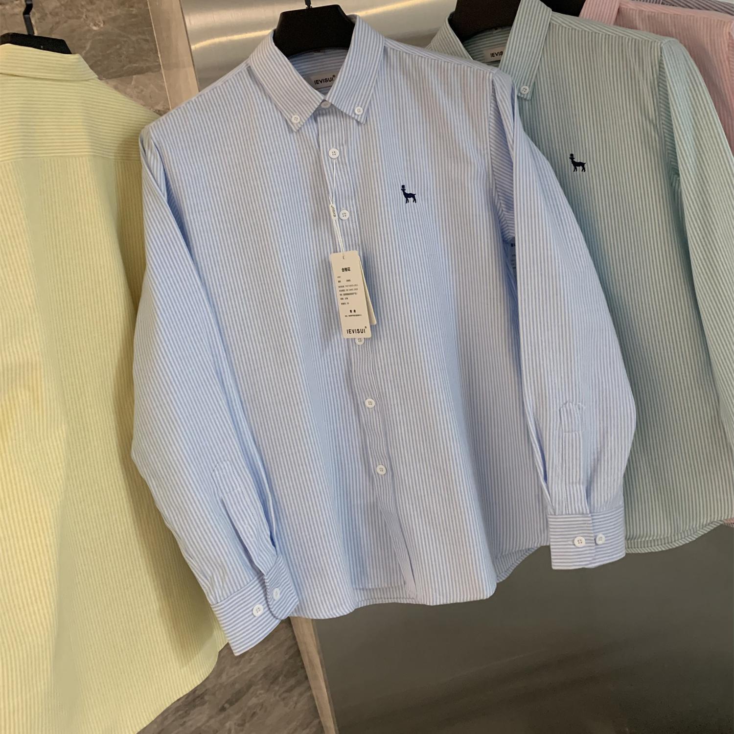 精致刺绣标!经典条纹秋季男士休闲百搭翻领长袖衬衫竖条纹衬衣