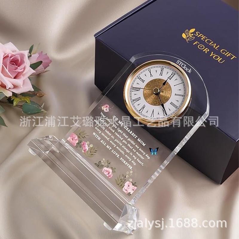 水晶欧式座钟结婚纪念礼品水晶钟表客厅摆件婚庆装饰厂家直销跨境