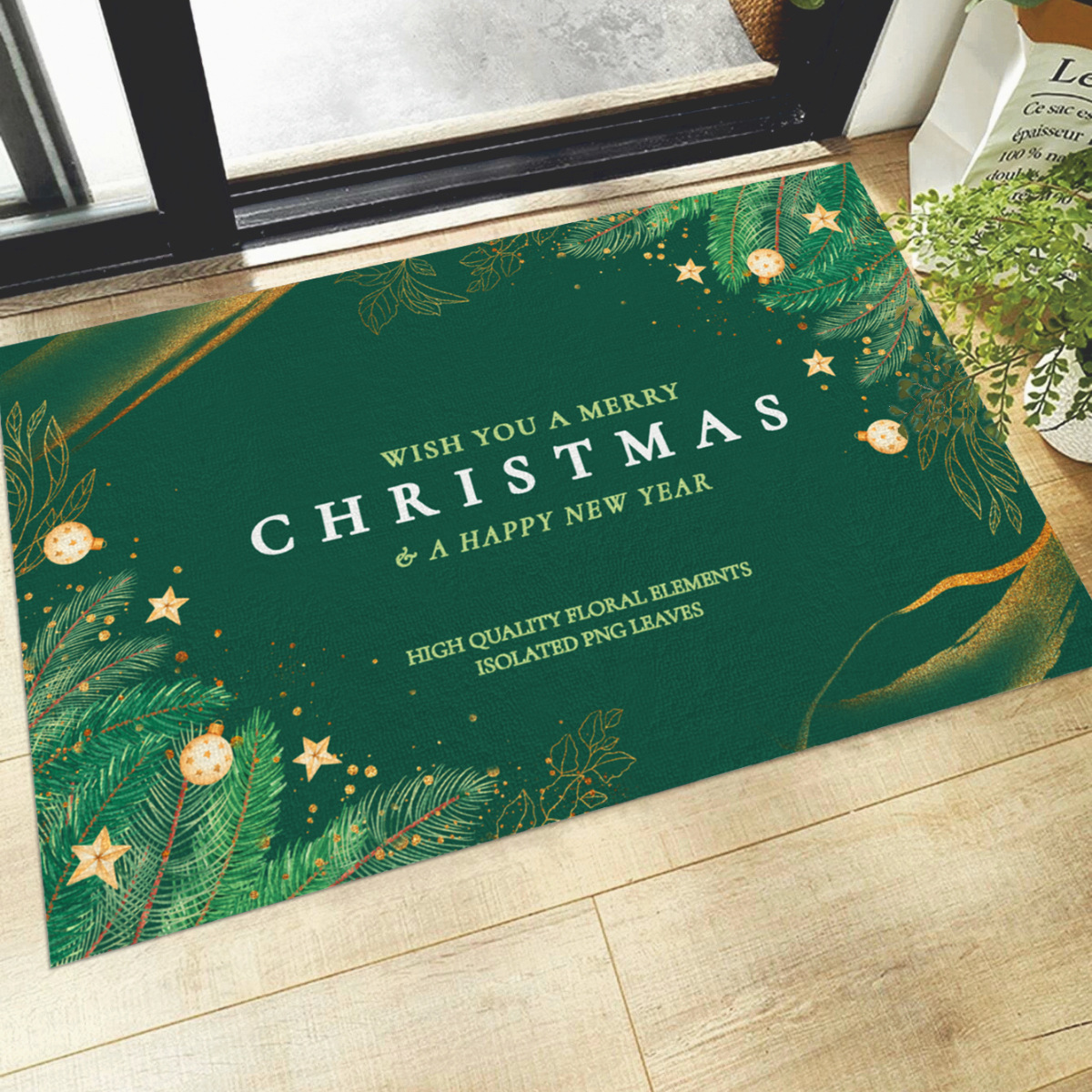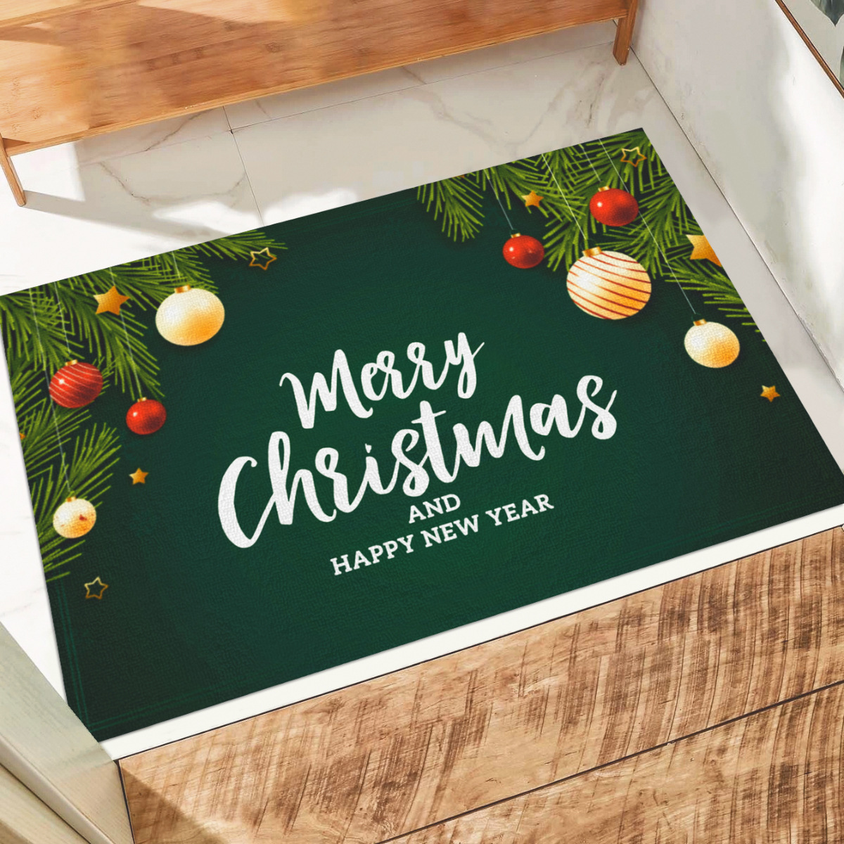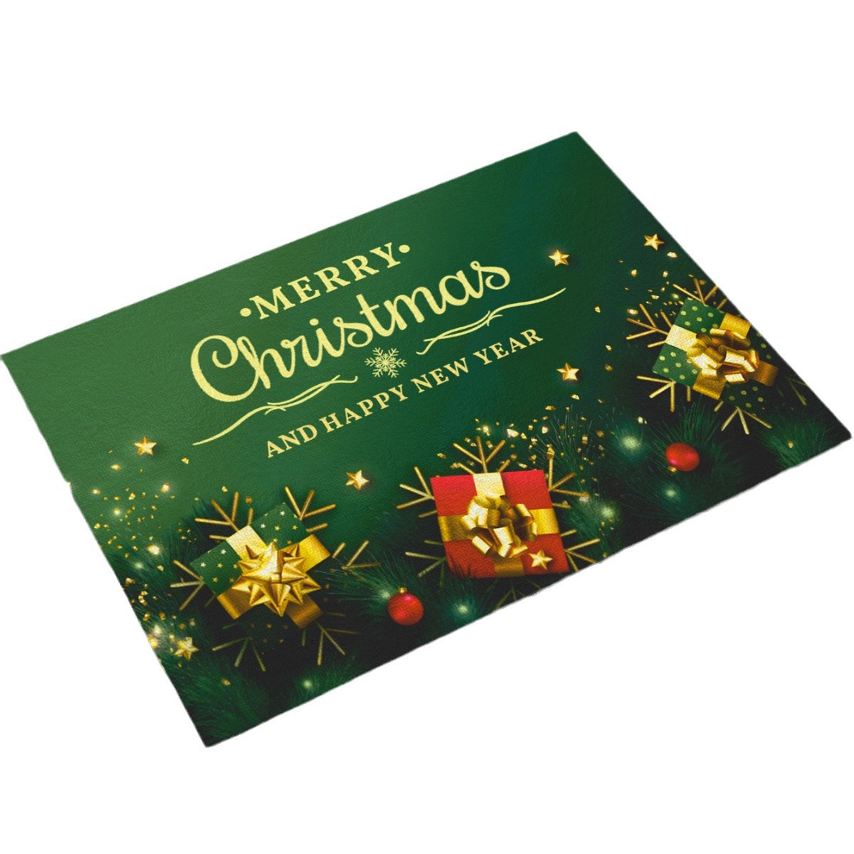 跨境亚马逊绿色圣诞防滑耐脏入户玄关门垫易打理节日现货地垫代发