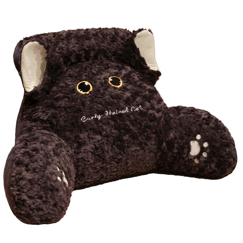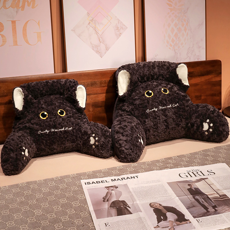 德文卷毛猫腰靠毛绒玩具黑色小猫咪网红公仔生日礼物女生睡觉抱枕