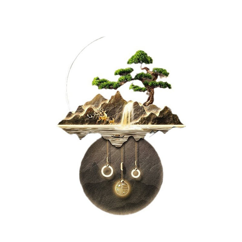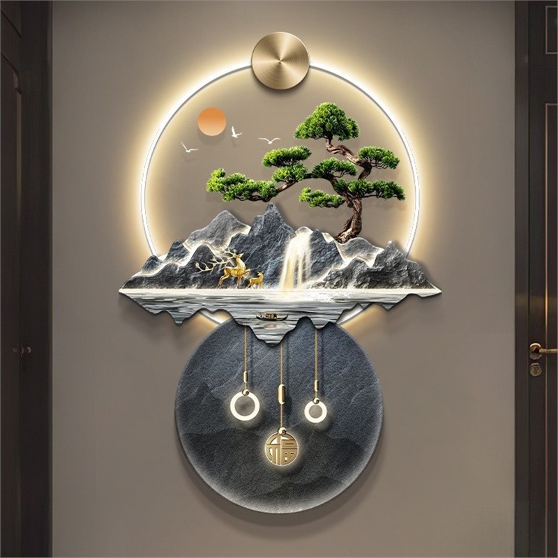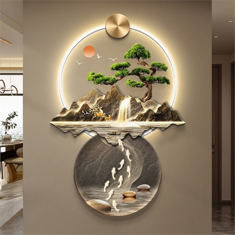 流水生财玄关装饰画新中式山水走廊过道挂画大气入户门立体壁饰灯