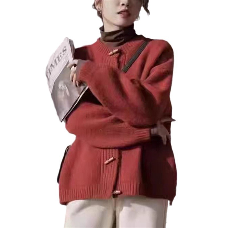 2024年新款外搭宽松上衣冬季慵懒风针织开衫外套纯色圆领宽松毛衣