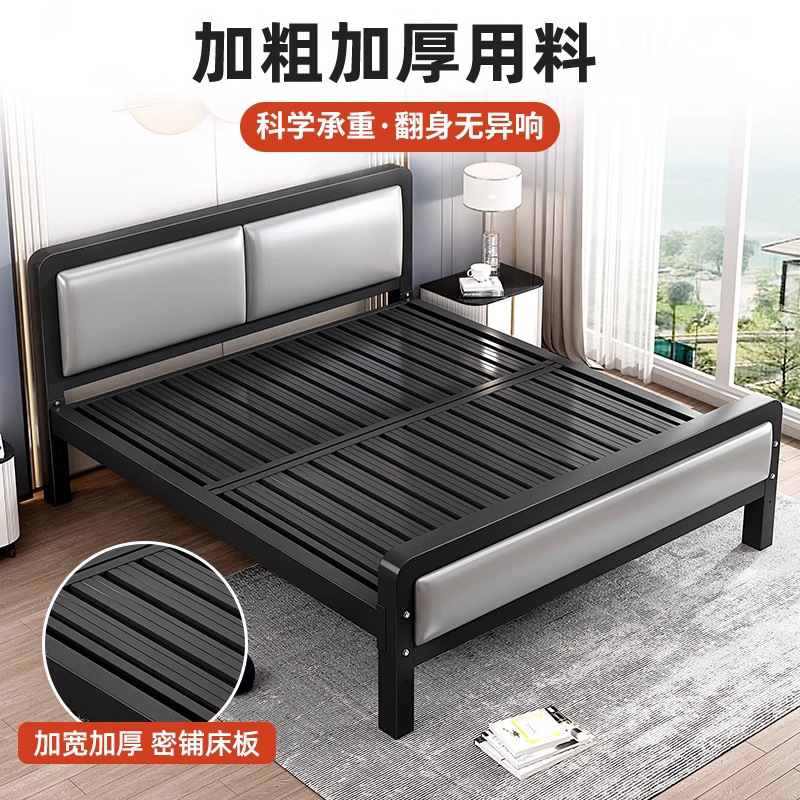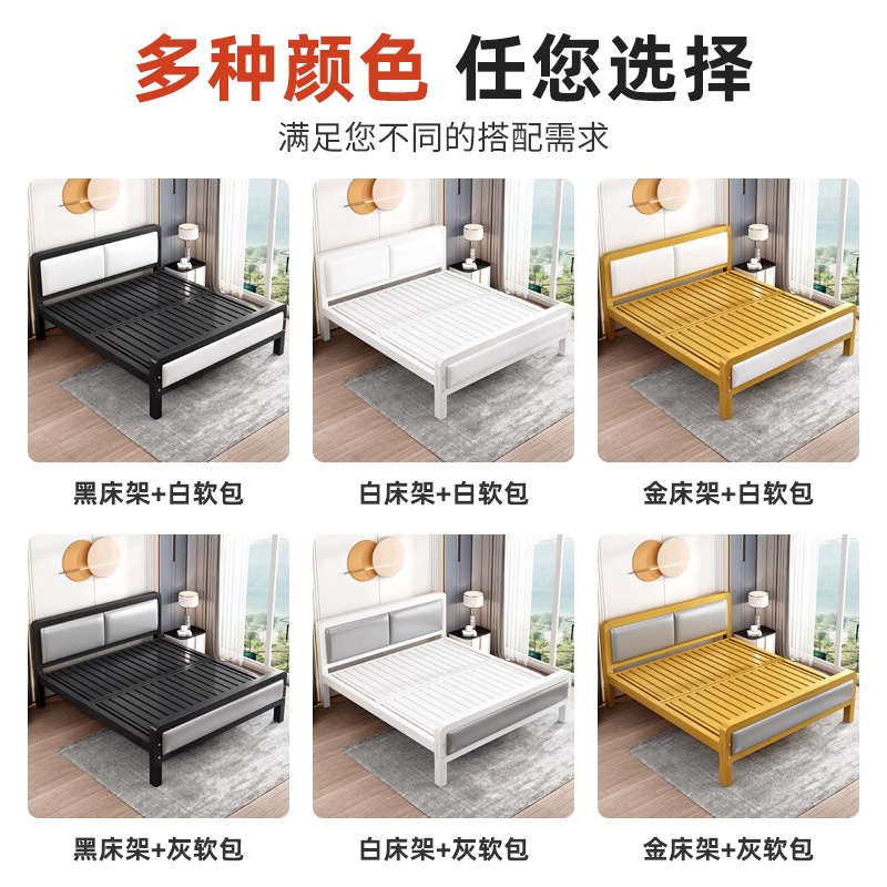 小户型卧室双人床厂家货源经济型铁架床批发单人公寓软包床