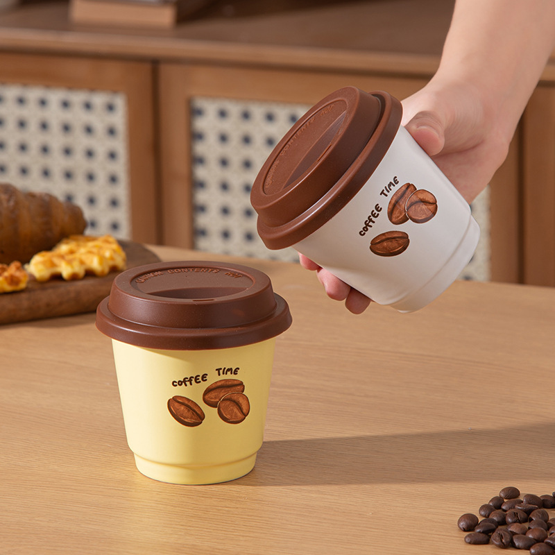 咖啡豆小号带盖咖啡杯子简约办公室陶瓷杯子便携随手水杯手握咖啡
