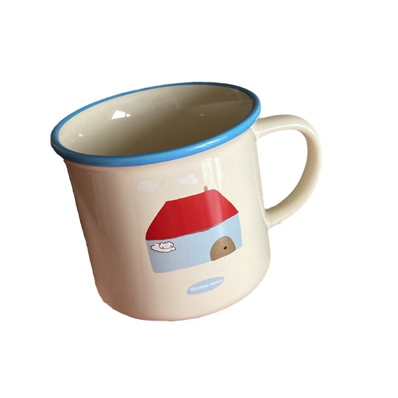 自制ins温馨卡通红房子小猫咪陶瓷马克杯可爱小猫咪水杯小众270ml