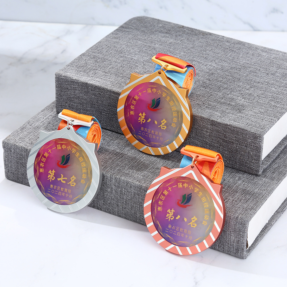 新款金属水晶奖牌制作荣誉儿童学生学校马拉松运动会纪念挂牌刻字