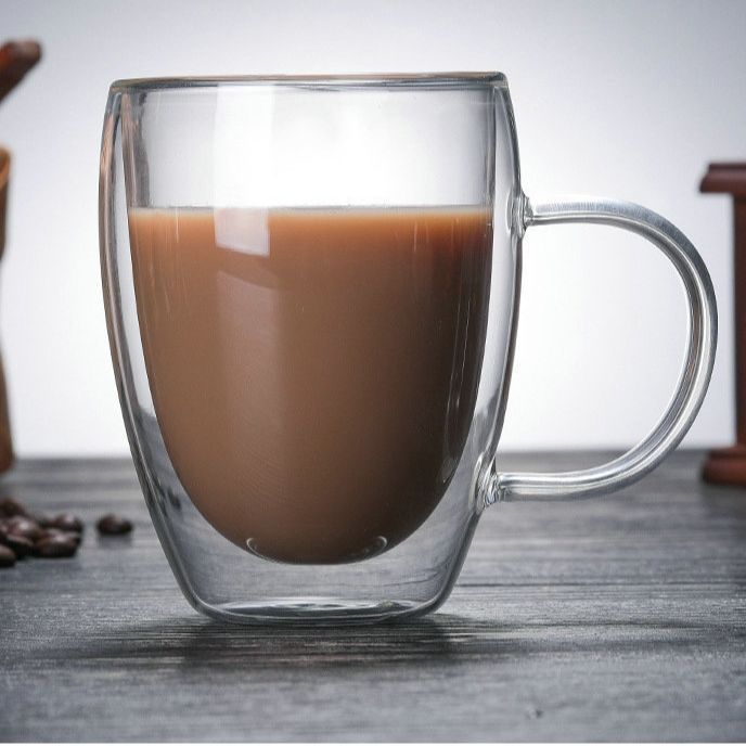 现货批发双层透明玻璃咖啡杯带把手隔热一次性咖啡杯高硼硅水杯