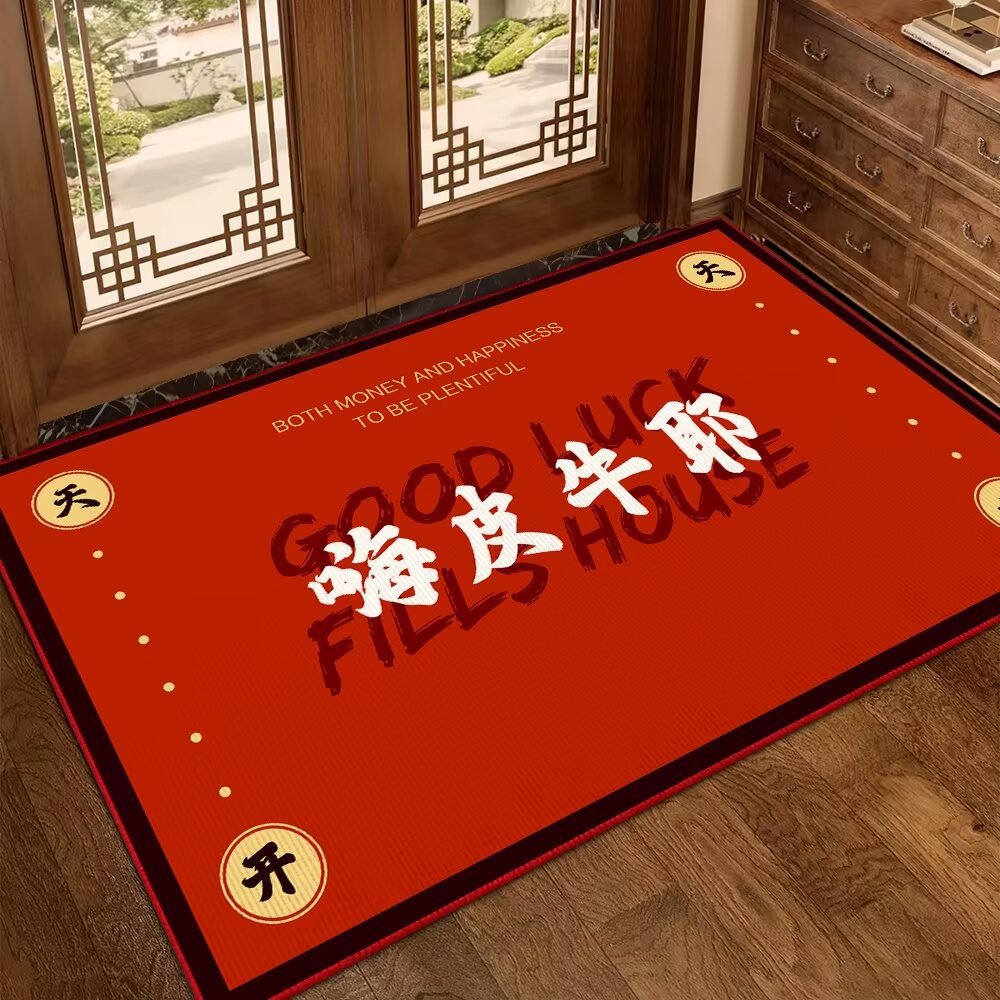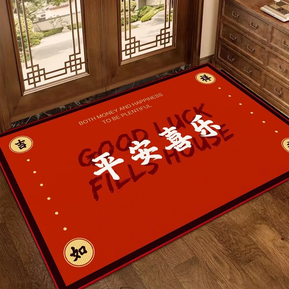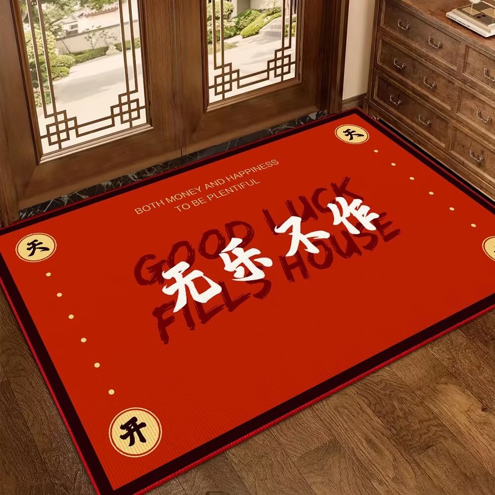红色喜庆欢迎回家入户玄关门口耐脏易打理地垫水晶绒新年氛围感