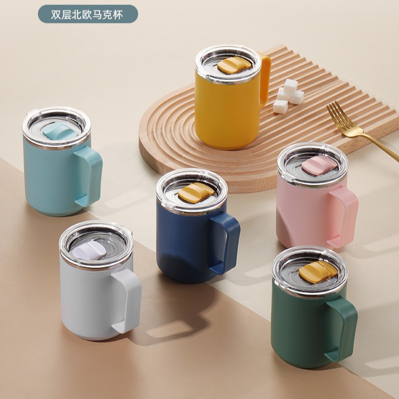 304不锈钢马克杯 双层便携咖啡杯办公带盖保温杯家用马克杯便携