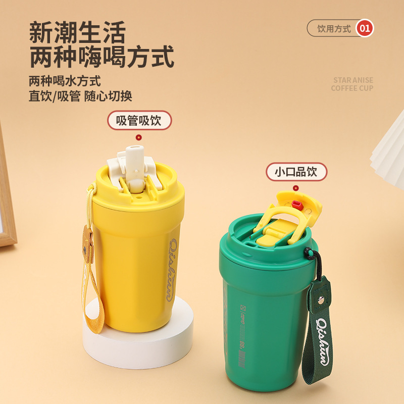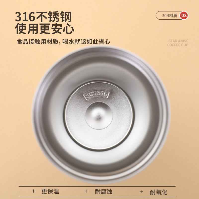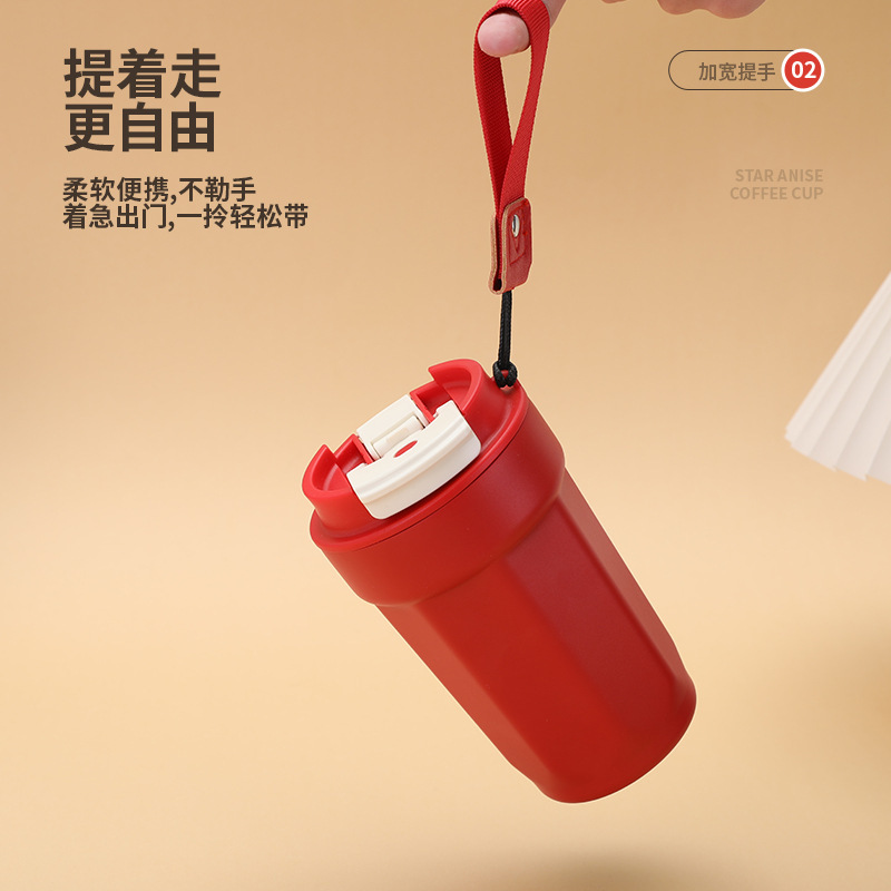 跨境爆款316不锈钢保温杯双层真空八角咖啡杯户外便携提绳随行杯