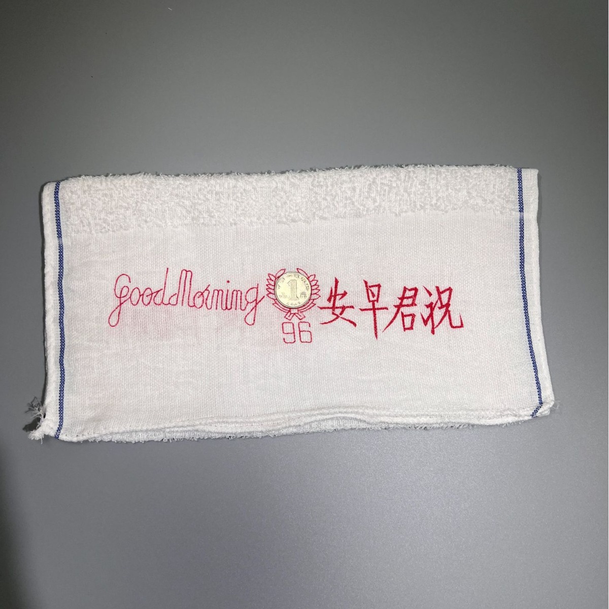 实体厂家96合新字全涤棉清洁劳保五金涂料祝君早安工业专用白毛巾