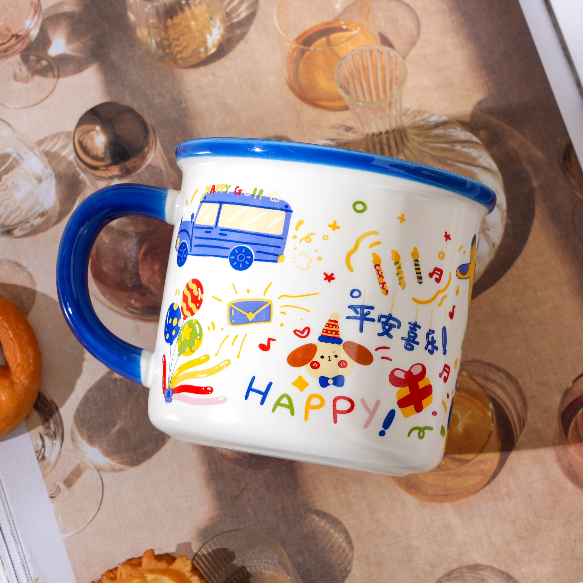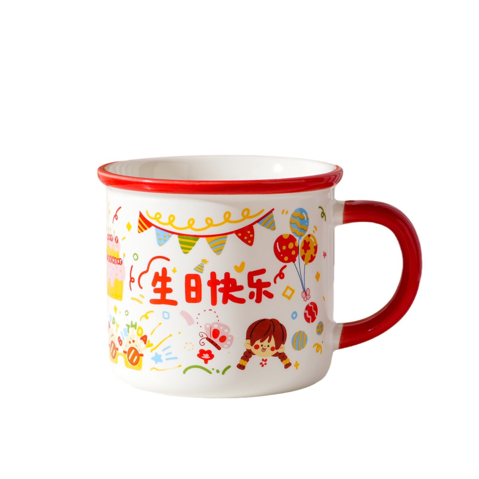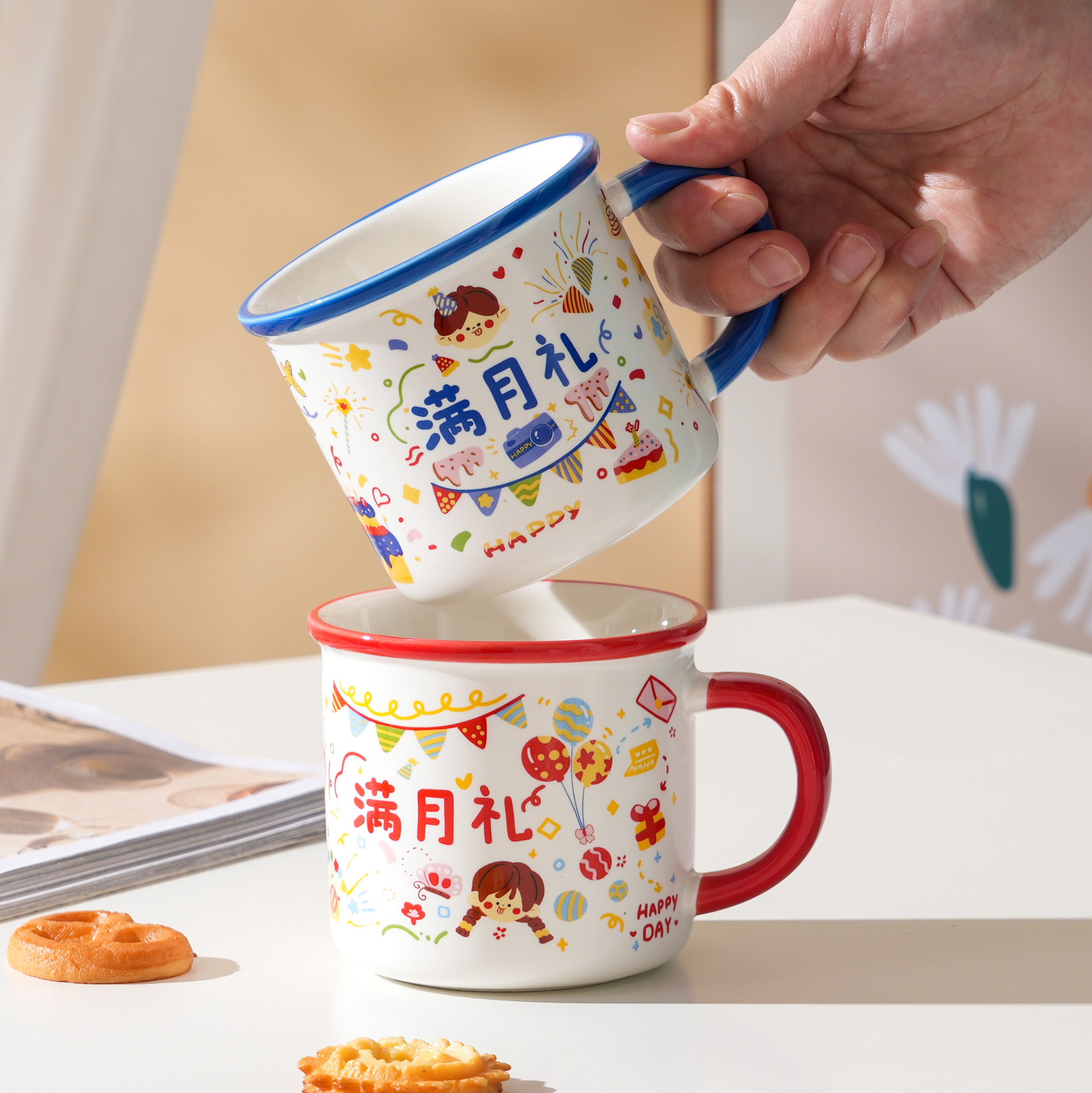 宝宝满月百日宴儿童生日快乐ins高颜值马克杯陶瓷水杯伴手礼批发