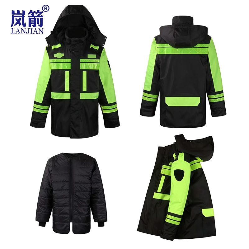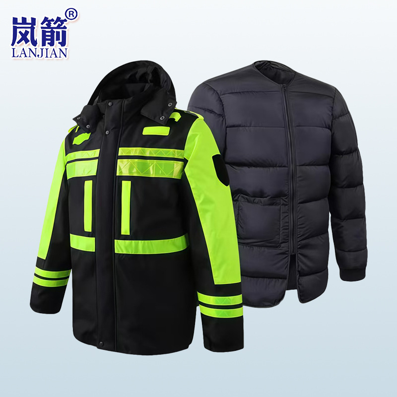 批发反光防寒服羽绒拆卸内胆冬季加厚交通执勤道路救援防寒棉服