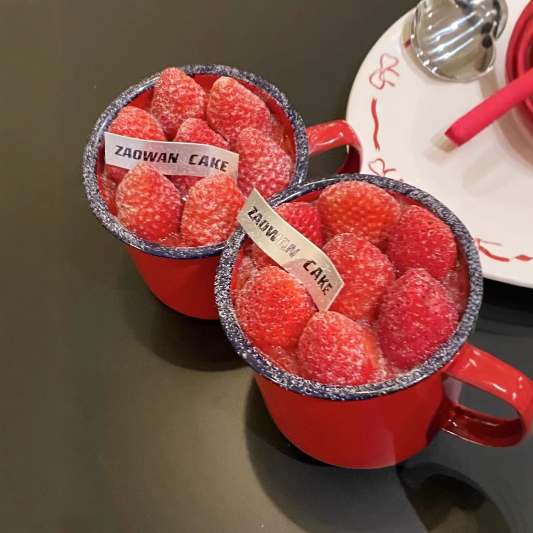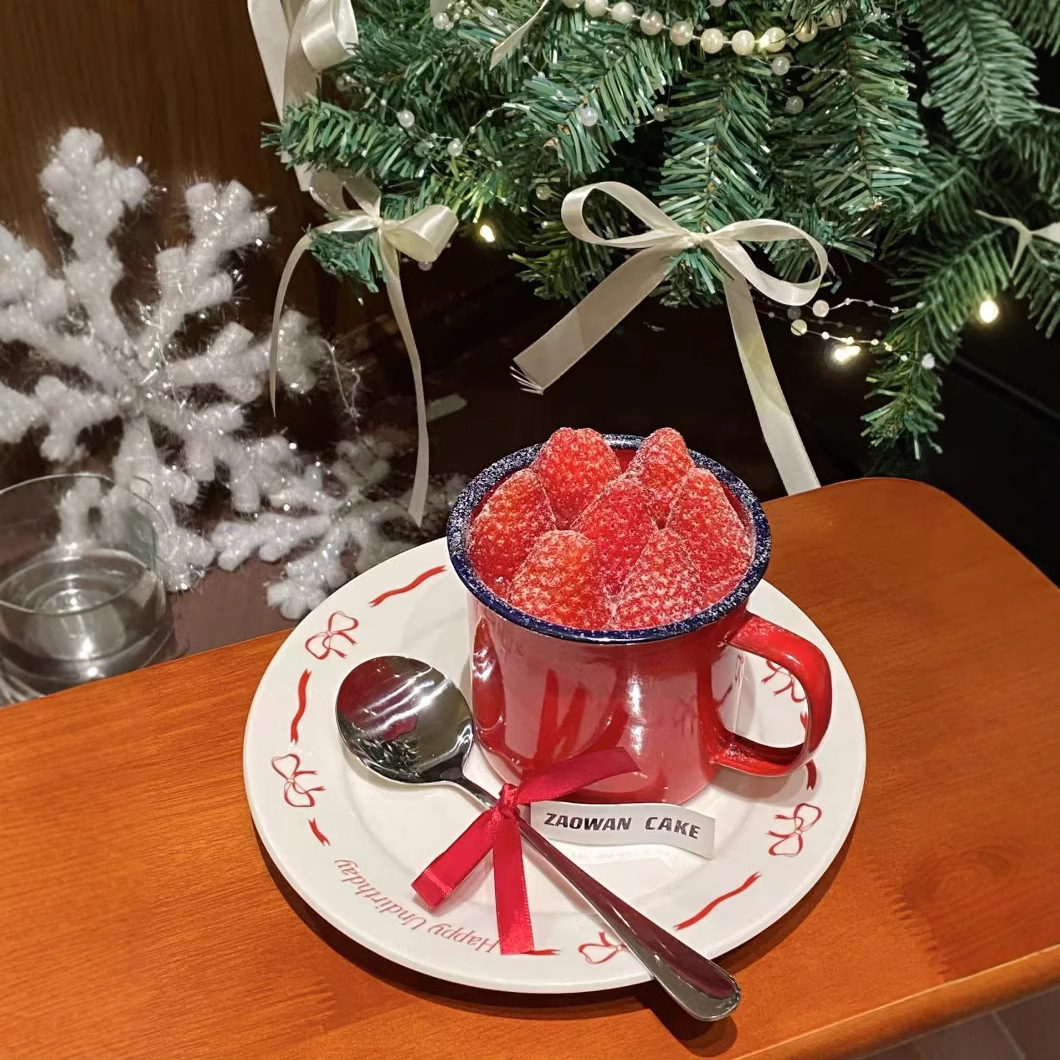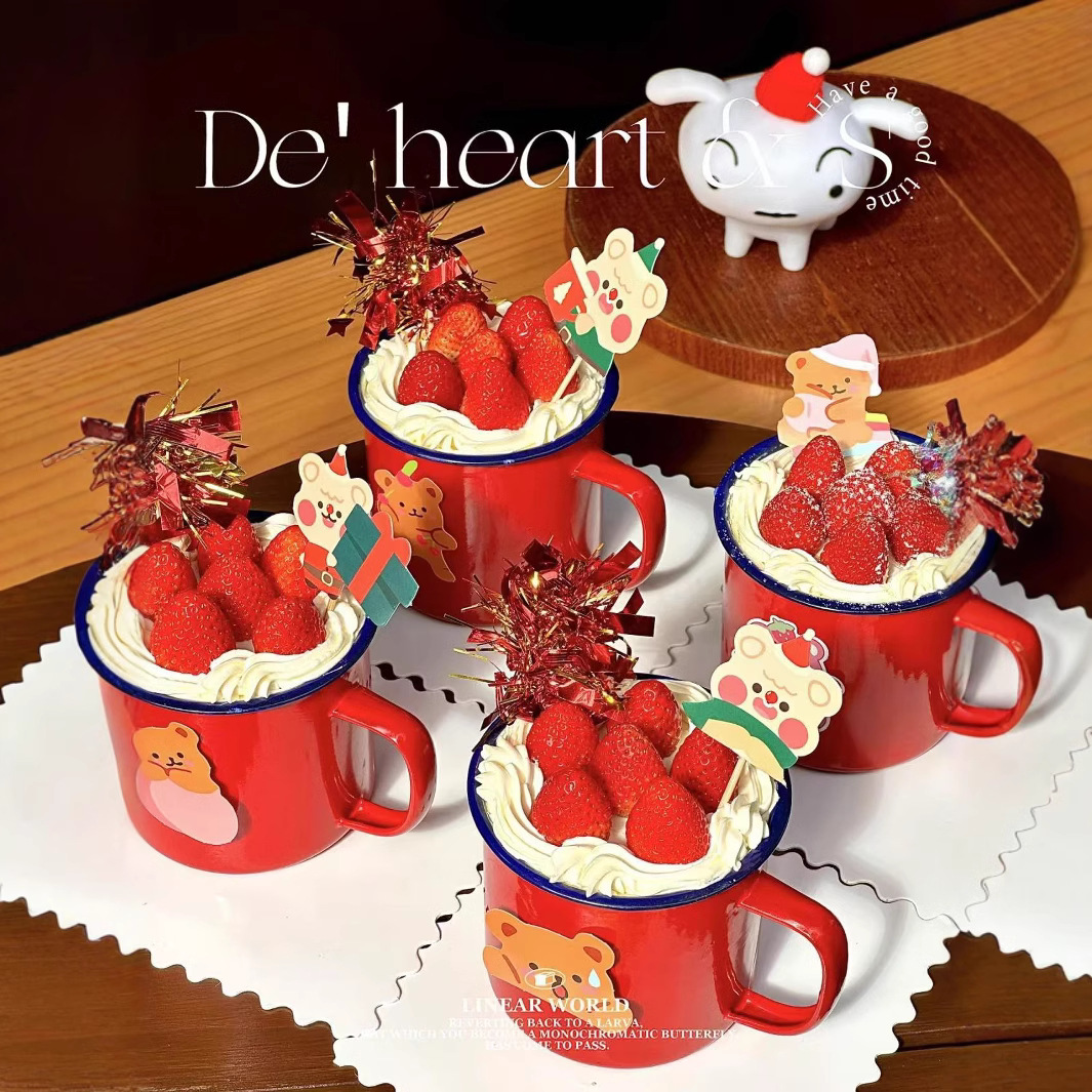 红色搪瓷杯蛋糕茶缸圣诞搪瓷杯老式怀旧茶缸红色蛋糕杯子网红蛋糕
