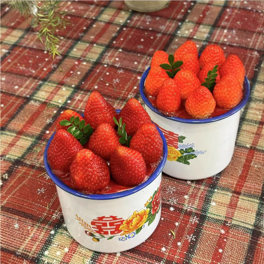 红色搪瓷杯复古怀旧杯搪瓷茶缸网红蛋糕杯 圣诞搪瓷杯老式搪瓷杯