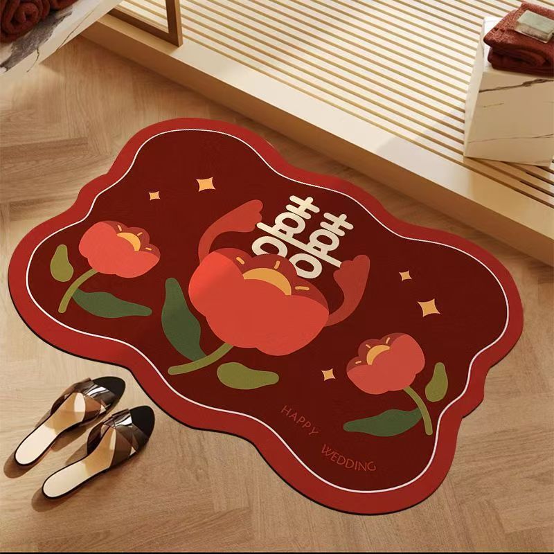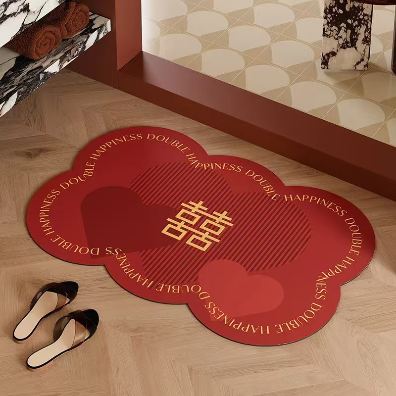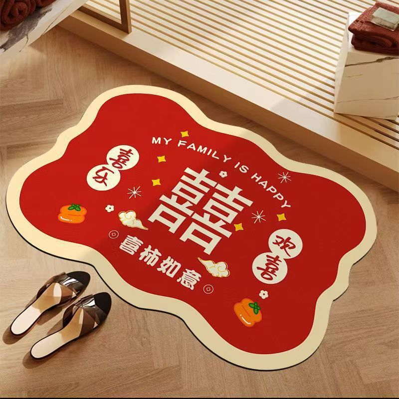 喜柿如意红色喜庆硅藻泥浴室卫生间门口防滑吸水耐脏易打理地垫