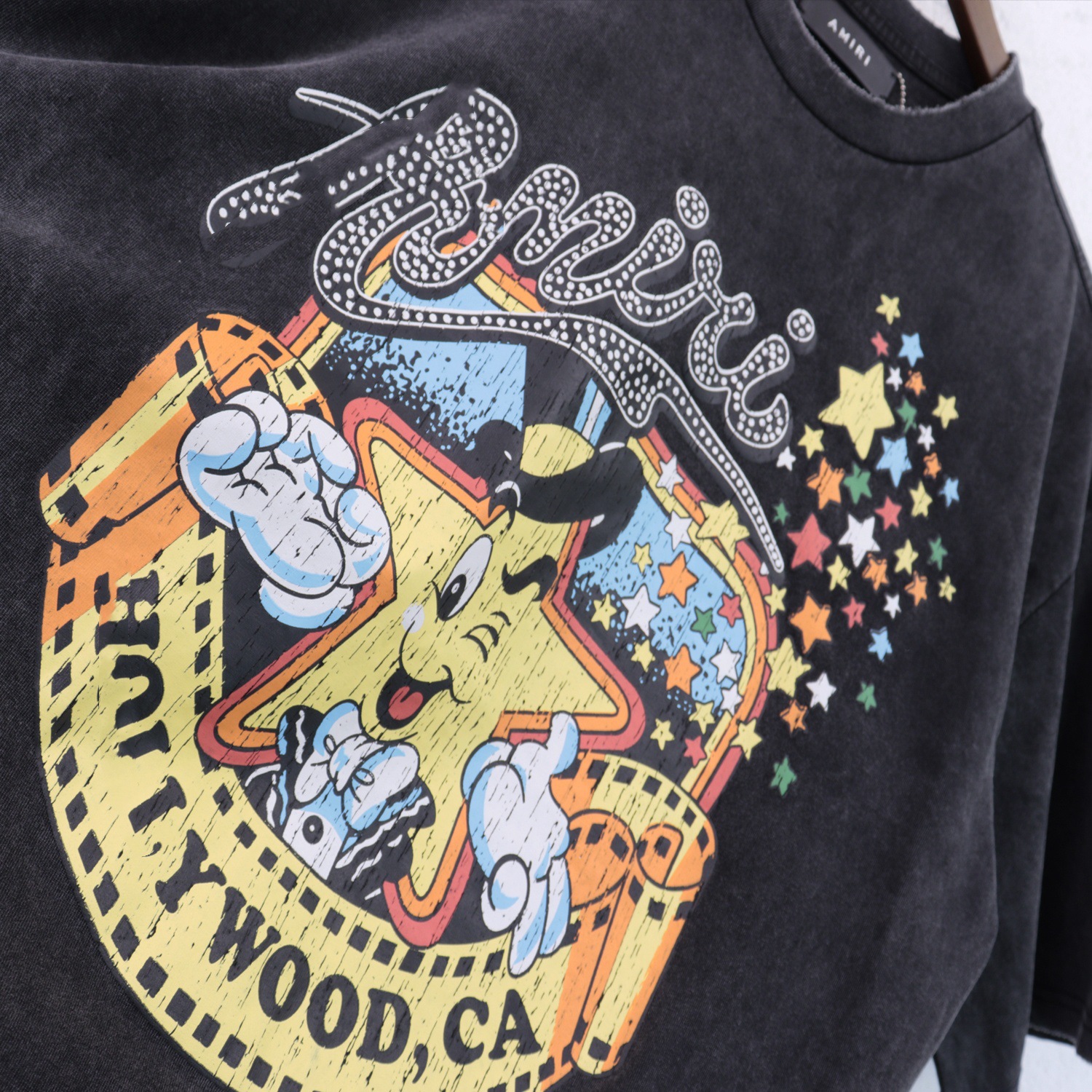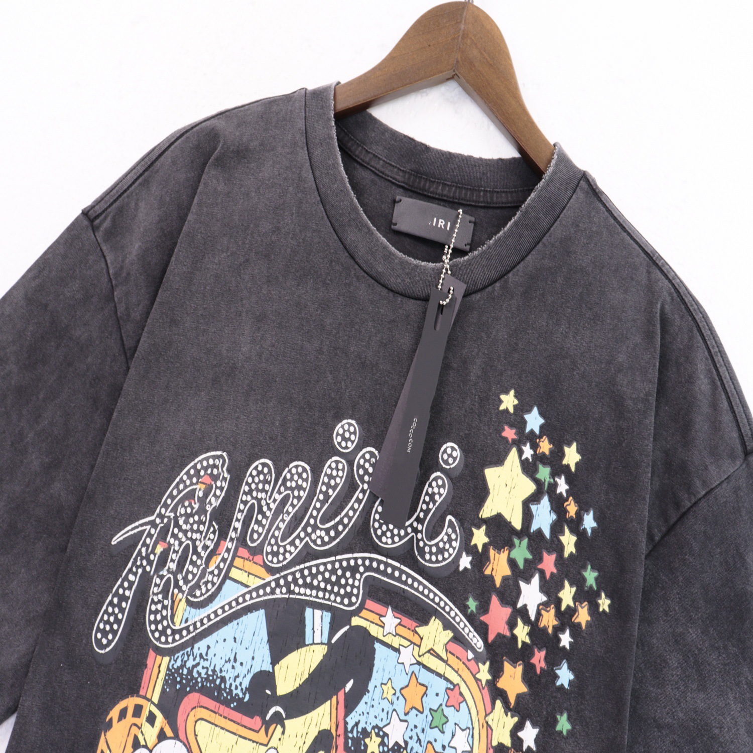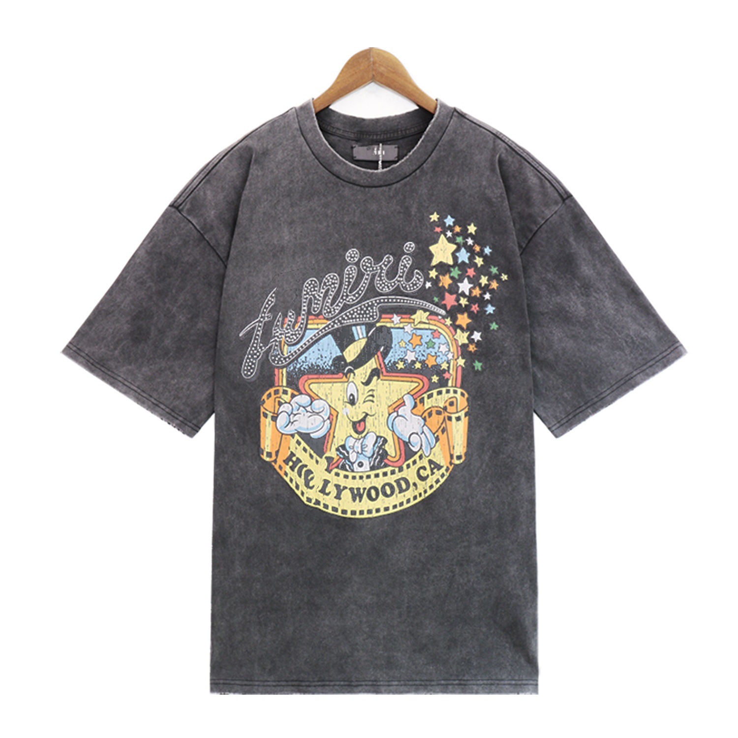 美式潮牌2024夏季新款刺绣短袖T恤男复古水洗tee体恤衫宽松做旧
