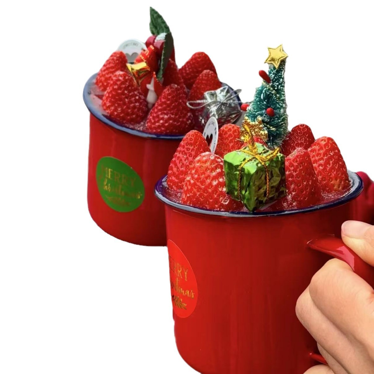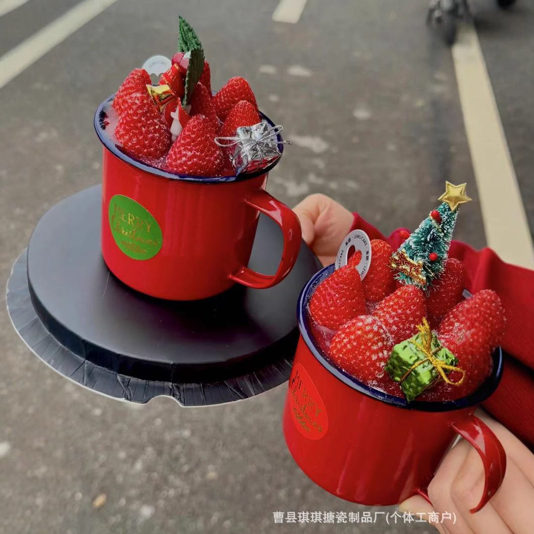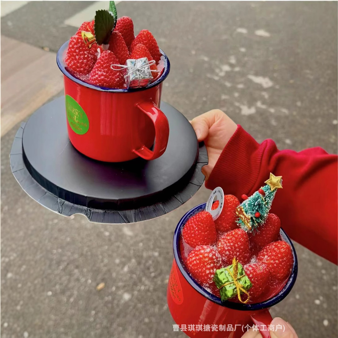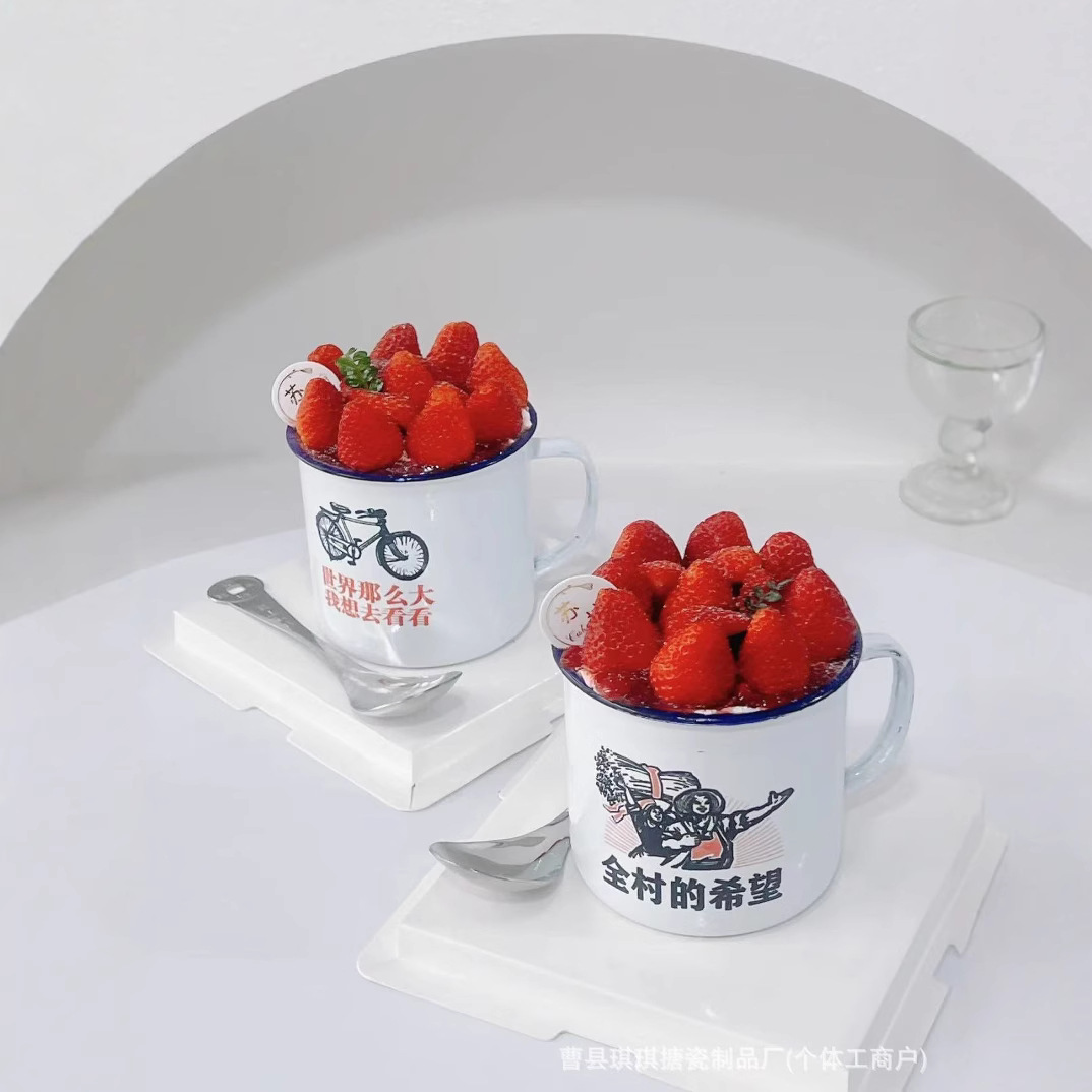 网红草莓搪瓷蛋糕杯复古怀旧茶缸茶杯圣诞节蛋糕装饰插件搪瓷杯马
