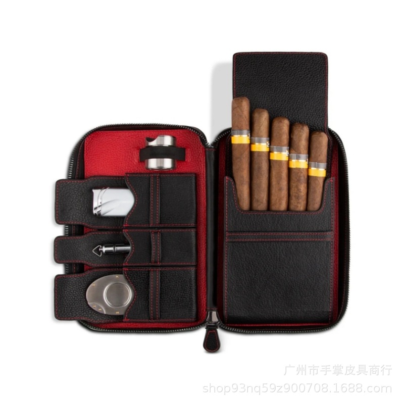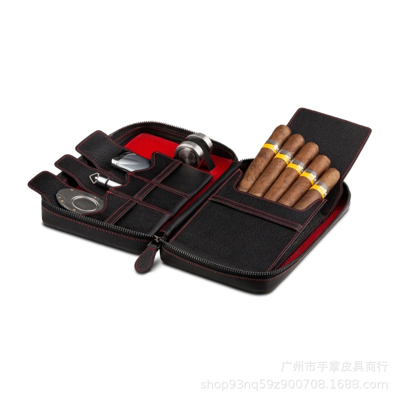 欧美复古男士拉链雪茄盒 疯马皮5只装大容量多功能小荔枝纹雪茄包