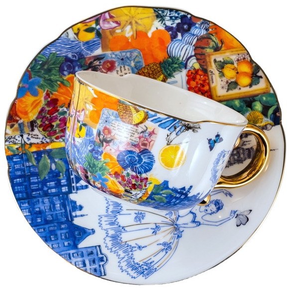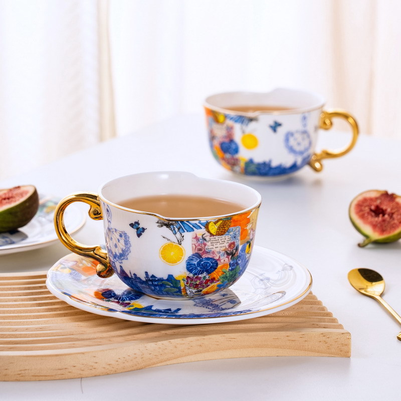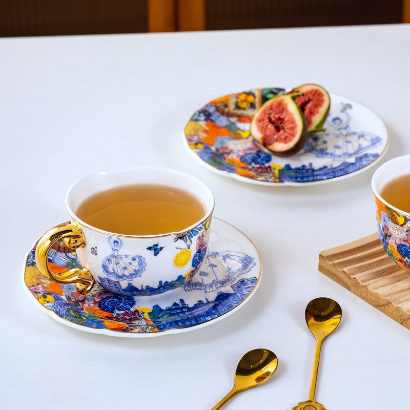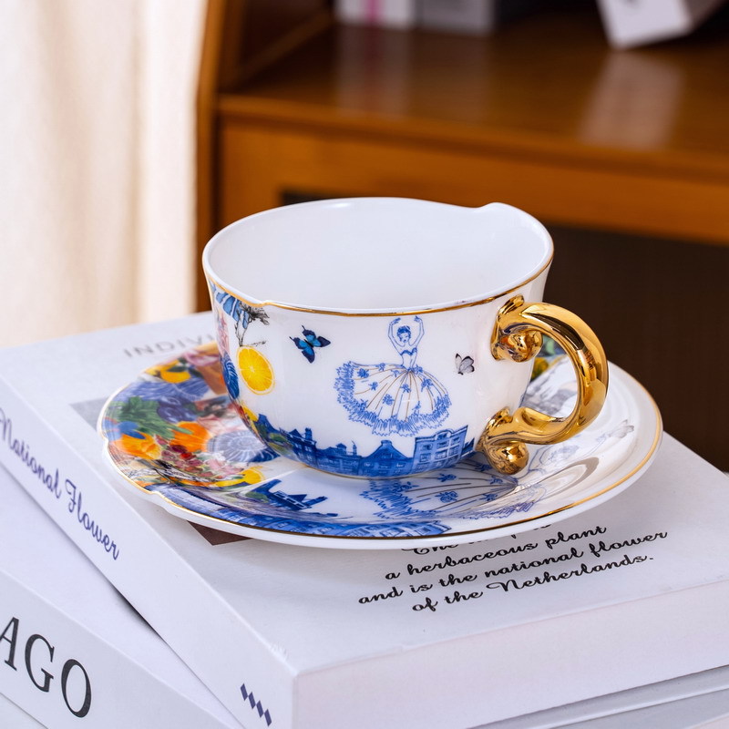 高骨瓷复古轻奢描金把不规则咖啡杯碟梦境芭蕾混搭风格陶瓷杯