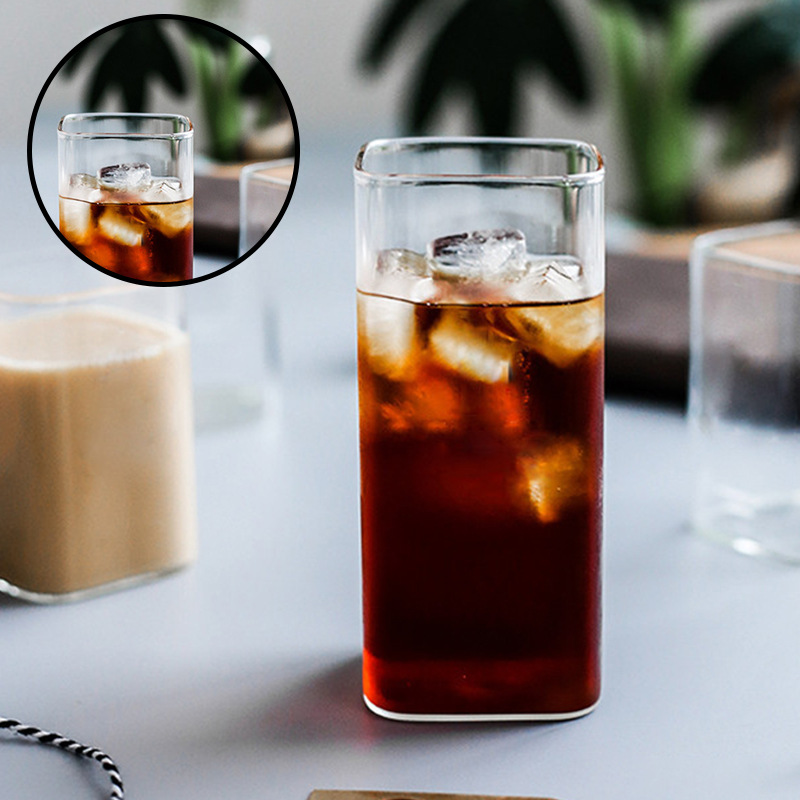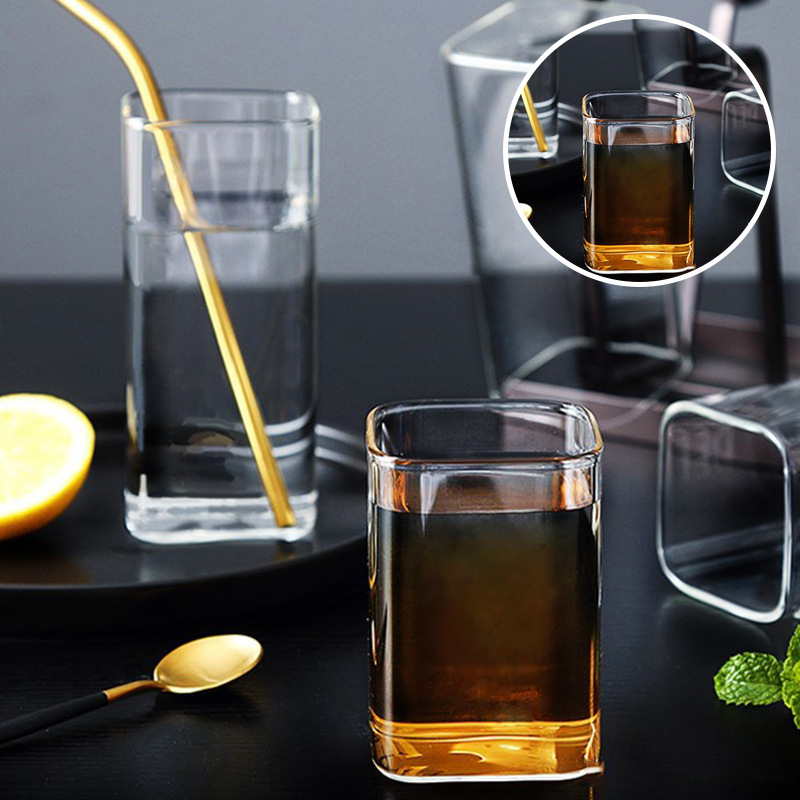 方形杯高硼硅玻璃杯耐冷耐热鸡尾气泡果汁杯方形玻璃杯