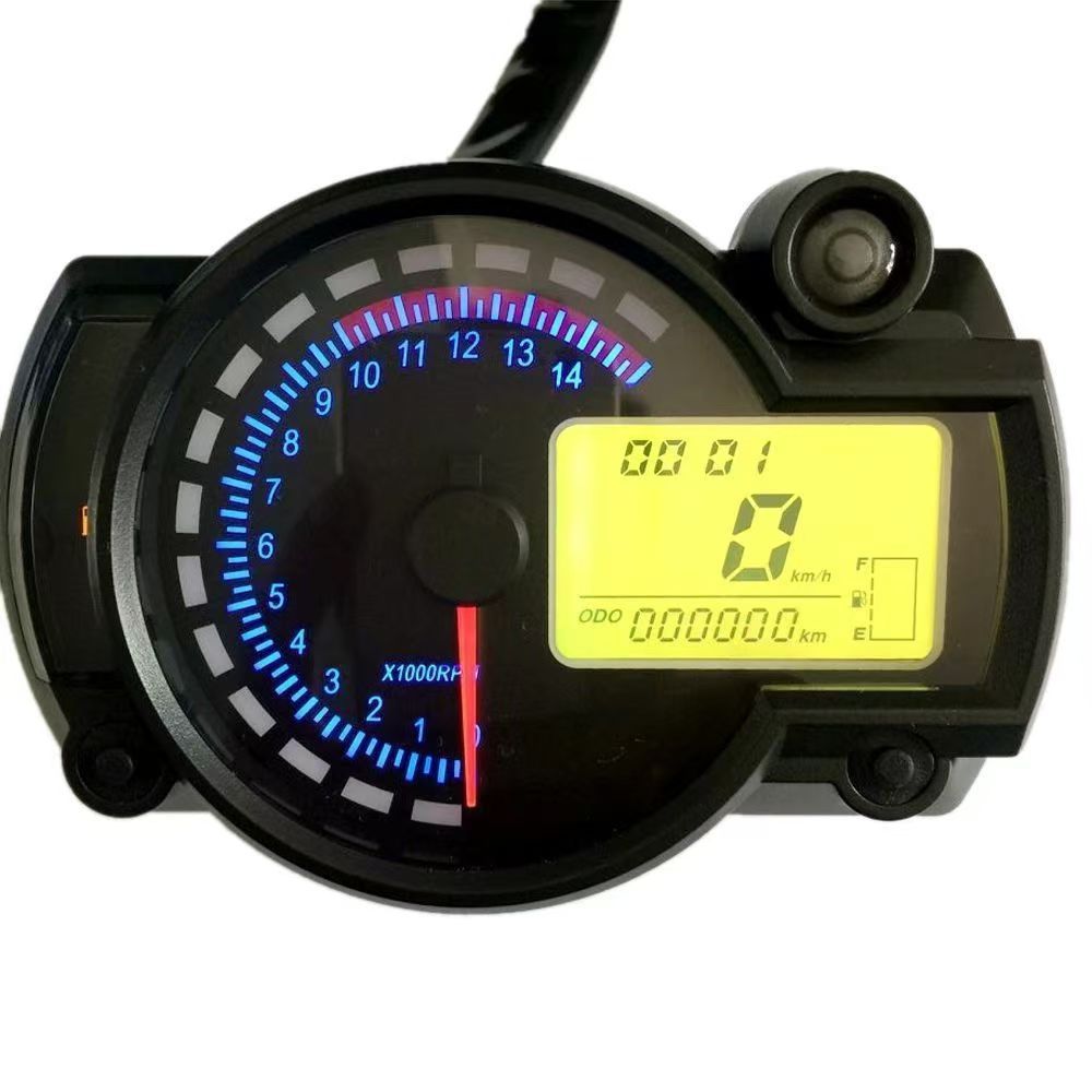 摩托车12V改装液晶数字7彩可调色转速表码表总成数字里程表
