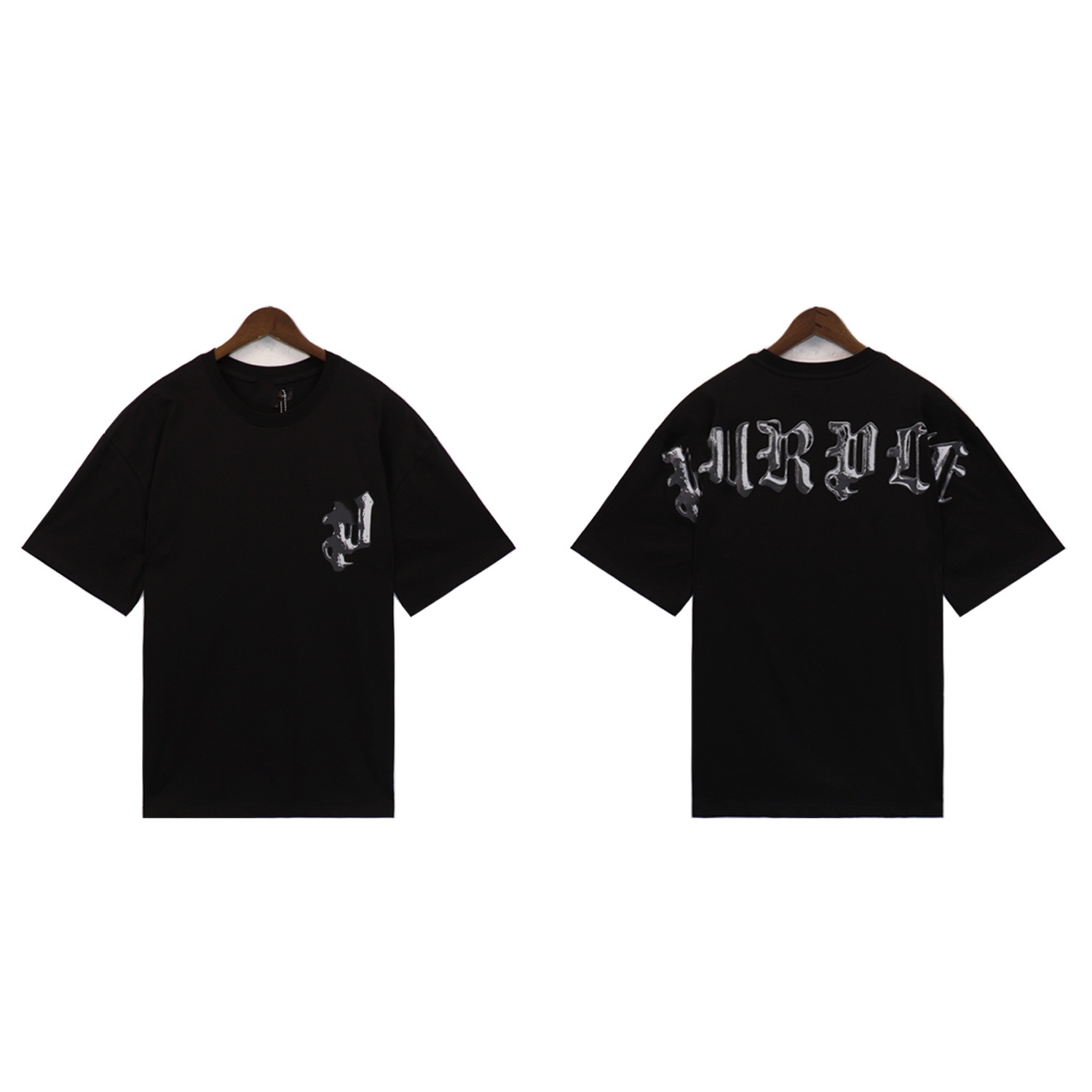 跨境外贸 purle 阴影字母印花LOGO上衣 情侣高街休闲宽松短袖T恤
