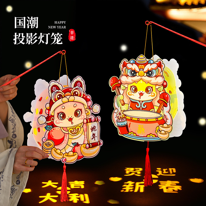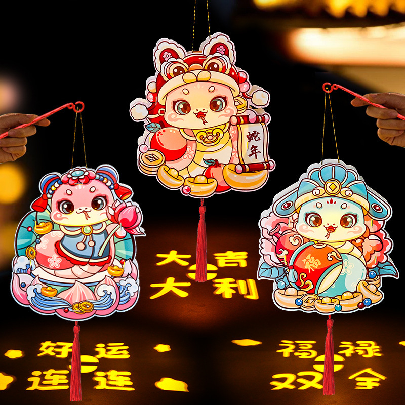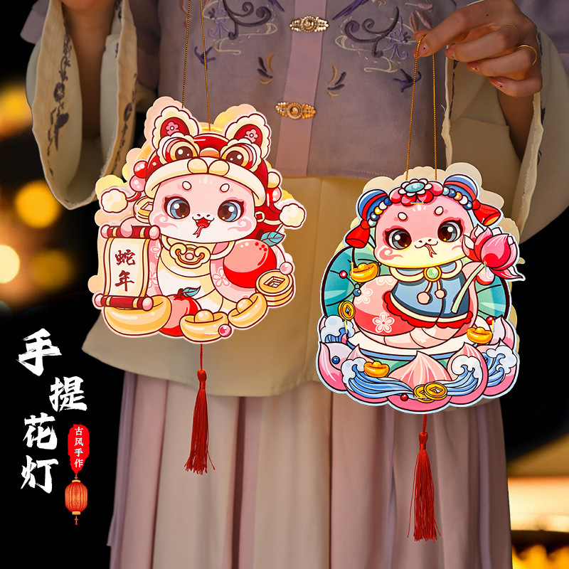 新年灯笼手工diy材料包儿童手提花灯2025新款春节过蛇年发光挂饰