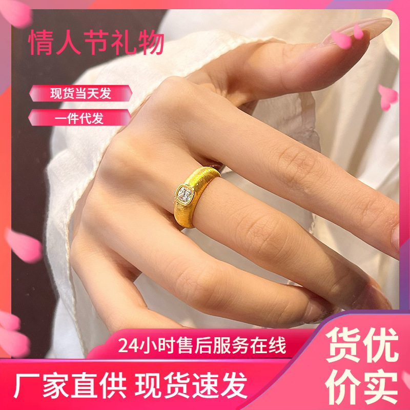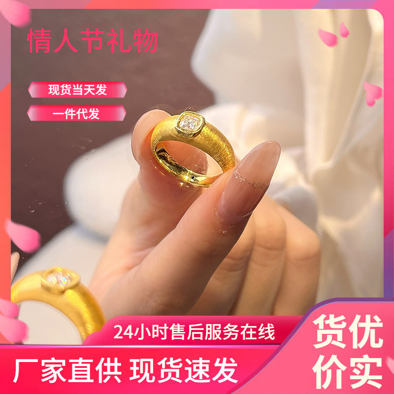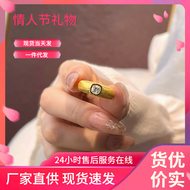抖音新款方钻拉丝戒指高级感设计轻奢个性百搭小众时尚新潮饰品