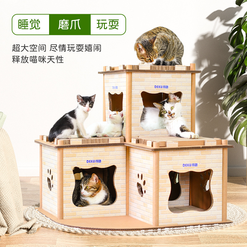 原创猫用品瓦楞纸猫咪豪宅猫屋子房子磨爪玩具猫爬架多猫宠物猫