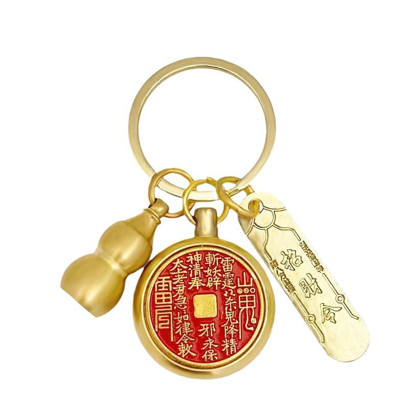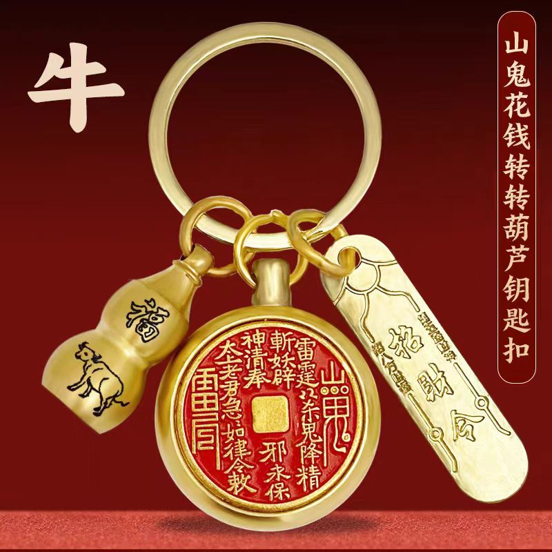 山鬼花钱吊坠纯黄铜葫芦真品朱砂挂件八卦护身符生肖钥匙扣男女士