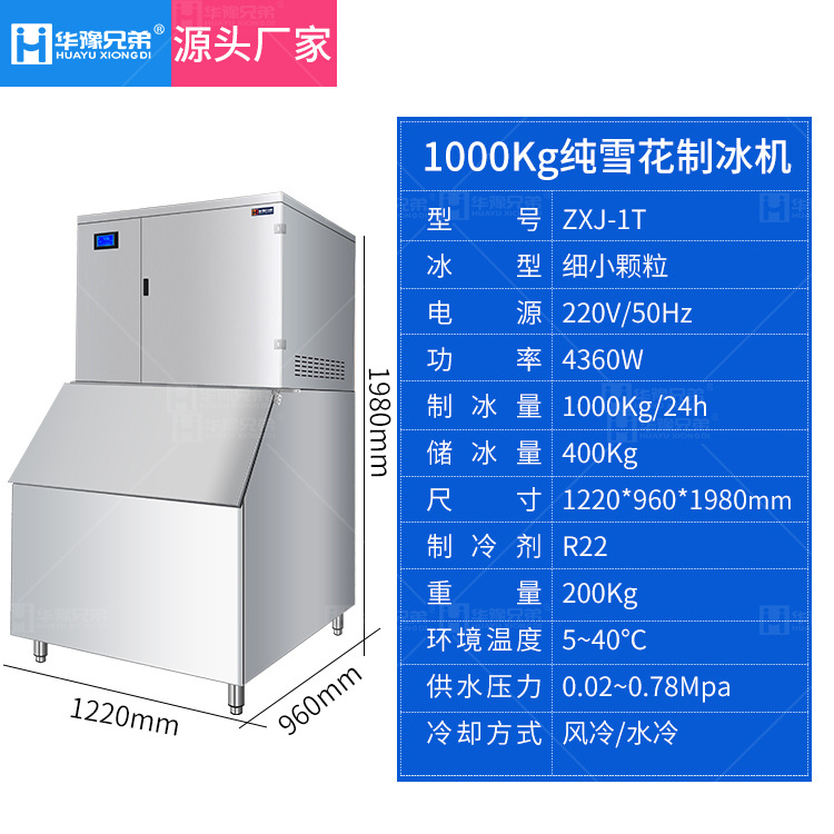 1吨雪花制冰机商用大型火锅店水产海鲜姿造料理店碎颗粒制冰机