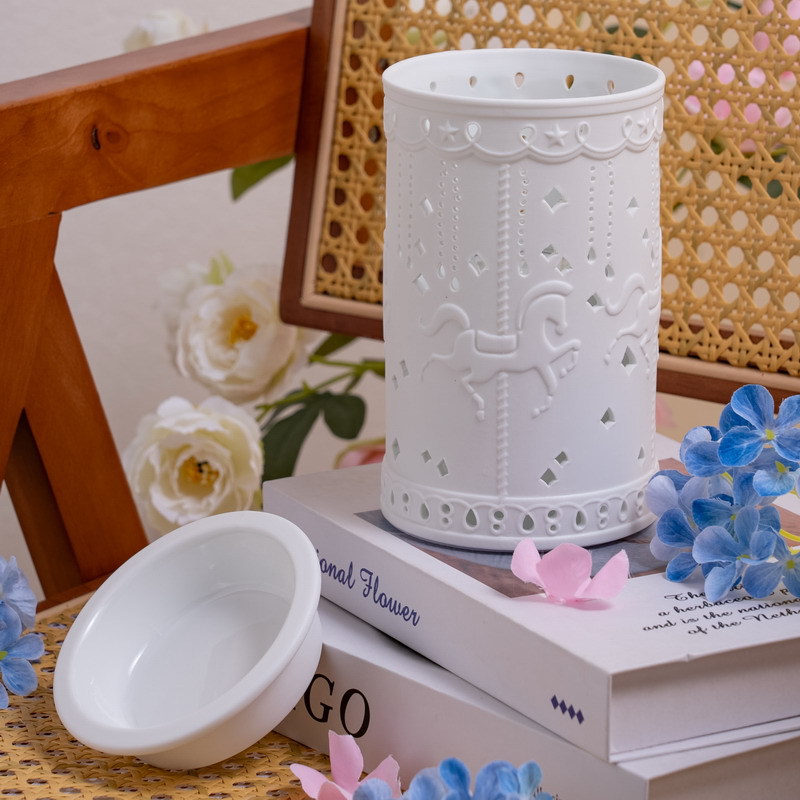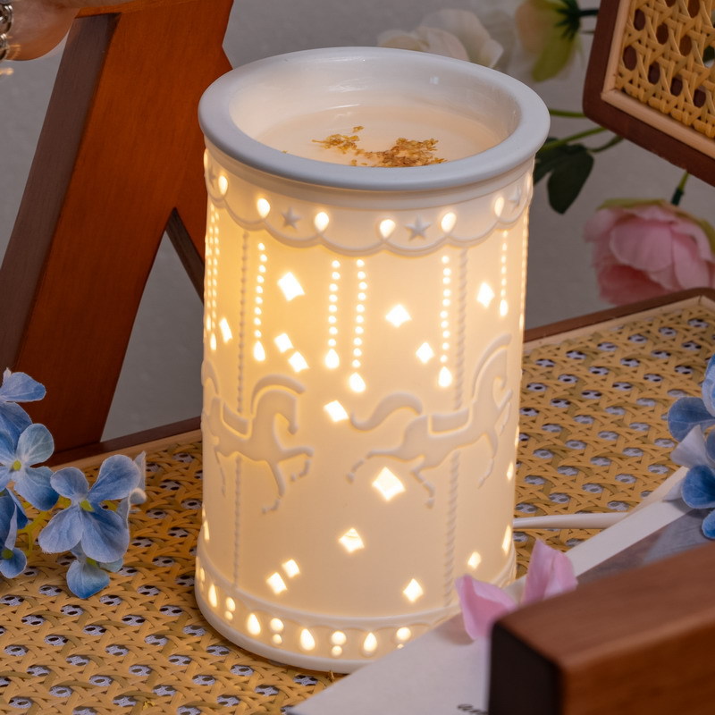 创意童趣旋转木马融蜡灯 无火香薰灯陶瓷台灯夜灯装饰床头灯摆件