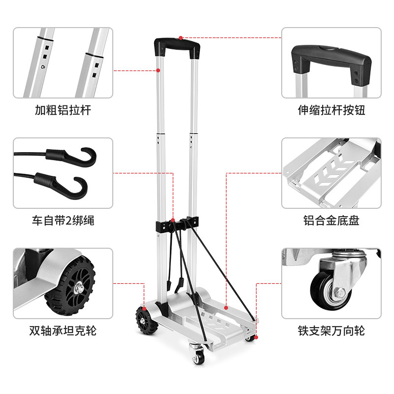 铝合金底盘小拖车拉货万向轮搬运车家用折叠小推车便携户外手拉车