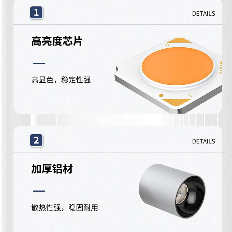 灯光颜色 | 4000K自然光/灯身默认砂白色+黑色防眩灯杯 | 灯光颜色 | 6000K正白光/灯身默认砂白色+黑色防眩灯杯 |