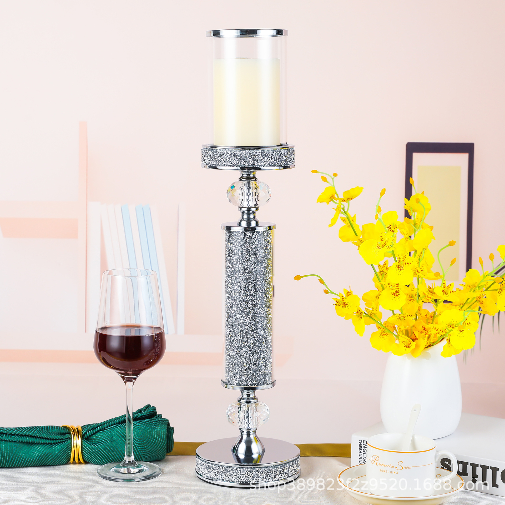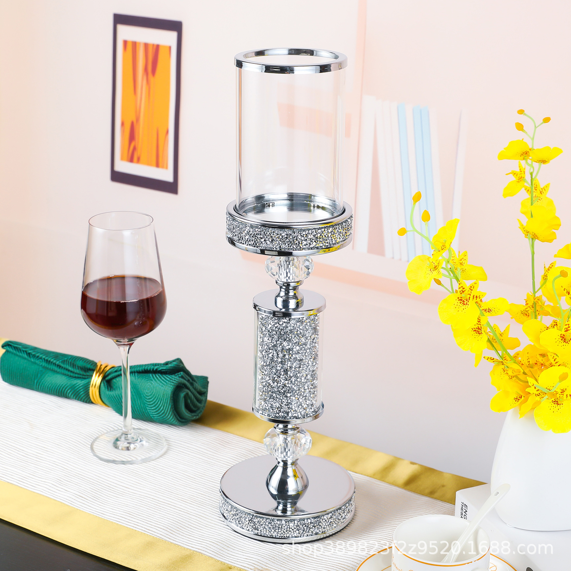 亚马逊新款水晶烛台客厅卧室床头装饰摆件酒店婚宴厅婚礼摆饰品
